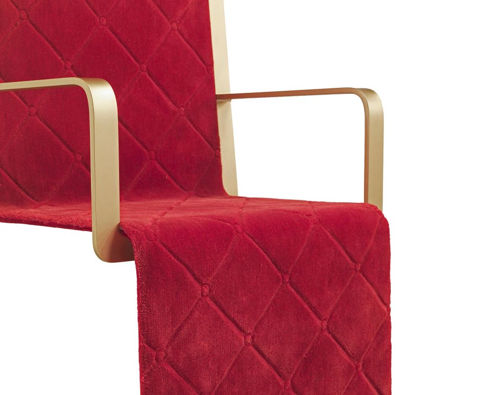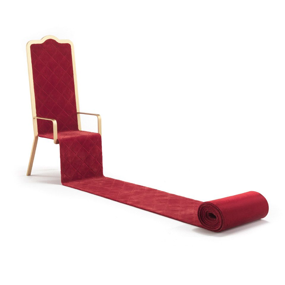 Măsurând 59cm x 65-100cm x 150cm, scaunul poate fi cel mai bine perceput ca o abordare contemporană a bunătății regale. Se potrivește cu estetica de design a lui Emanuele Magini și este fabricat de JCP Universe utilizând cele mai înalte standarde de precizie din Italia.