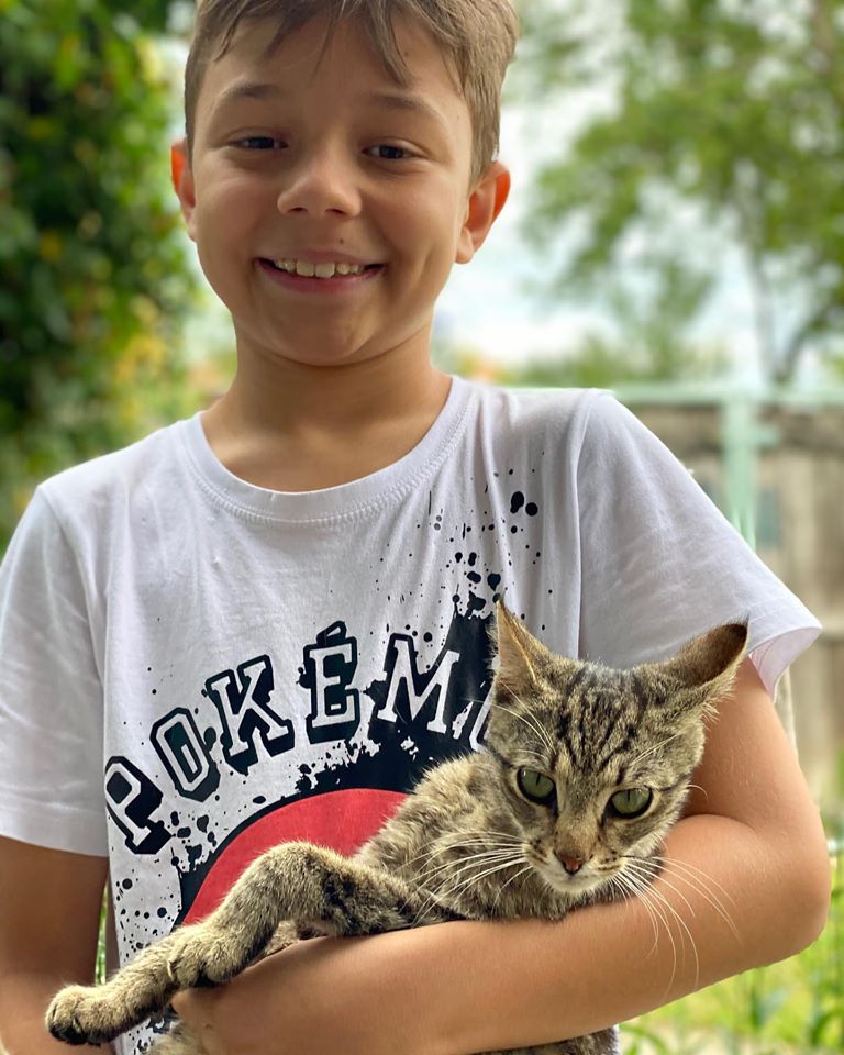 pe instatsory a lui Cătălin Măruță. I-au dat de mâncare și apoi l-au botezat și i-au spus Oscar. Însă după 50 de kilometrii cu mașină au căutat o persoană, găsind-o pe doamna Mioara din Scoarța care a promis că are grijă de pisică. Și nu numai că i-au lăsat pisica dar și multe plicuri cu mâncare specială pentru animăluțele. Doamna Mioara le-a făcut cadou la plecare lui Cătălin Măruță și familiei lui o floare, o mușcată pe care au luat-o acasă.