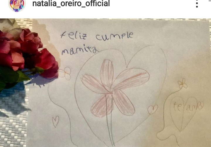 pe care o are împreună cu partenerul ei. Ricardo Mollo (62 de ani). Fiul ei i-a făcut cadou un desen cu o floare pe care i-a scris "Feliz cumple mamita - "la mulți ani mama". Un mesaj care a atins-o la inimă și pe care l-a publicat pe rețelele de socialziare. Imediat a primit o mulțime de aprecieri, ajungând la peste 4000 iar în dreptul lui a postat o inimioară.