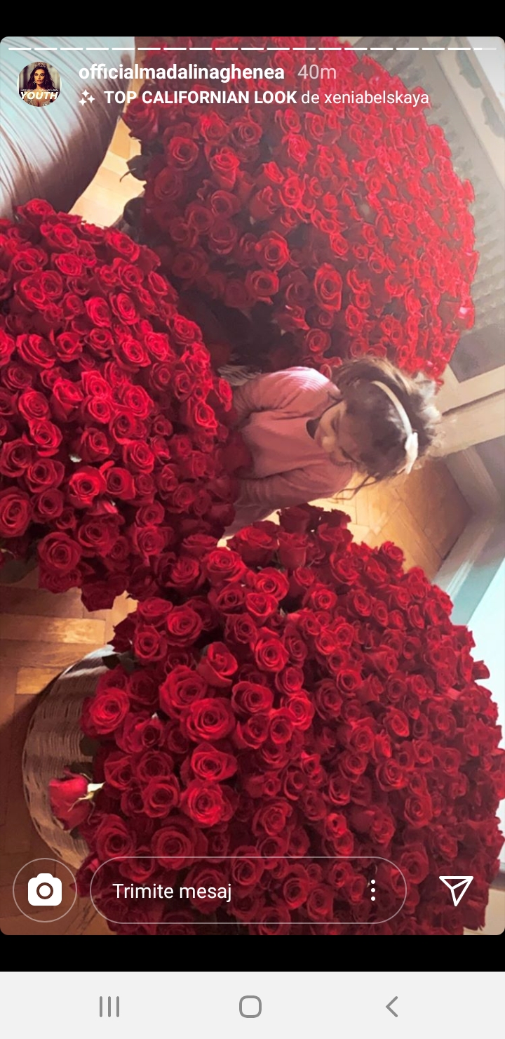 o surpriză despre care nu a povestit prea multe, însă a publicat doar imagini pe rețelele de socializare. Pentru că actrița a primit 3 coșuri imense de flori, trandafiri roșii pe care abia i-au adus doi bărbați. Femeia a publicat imagini și filmulețe pe instatstory cu