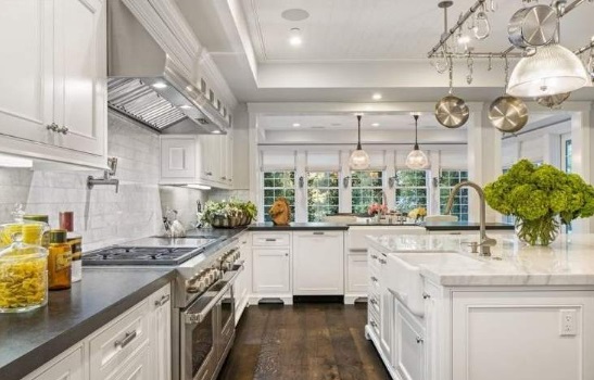 Dormitorul principal este dotat cu o cadă, chiuvete duble și un duș cu aburi, împreună cu o zonă de relaxare și un balcon privat cu vedere la curtea din spate. Există, de asemenea, o sală media cu un proiector și scaune confortabile, o bucătărie deschisă și băi cu zone de relaxare izolate pentru a completa decorul.