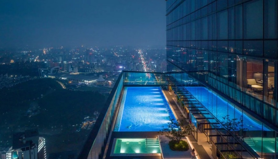 Guangxi China Resources Tower este o clădire de 403 m înălțime proiectată de Goettsch Partners. Piscina de la etajul 71 spulberă recordul deținut de piscina infinită de la etajul 57 din Marina Bay Sands de la Moshe Safdie. Vizitatorii se vor bucura de o seară de neuitat în acest loc unic și de o panoramă de 180 de grade a lacurilor, parcurilor și munților din jur.