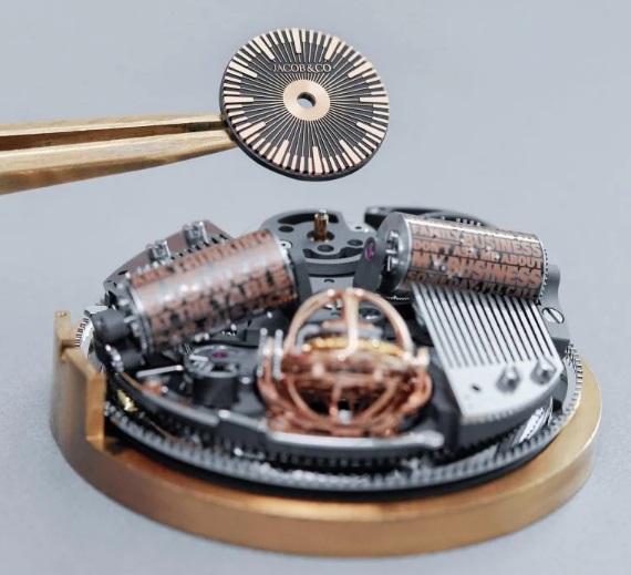 Piesa centrală, însă, este tourbillonul zburător cu trei axe, în care cuștile concentrice au timpi de rotație de 24, 48 și, respectiv, 180 de secunde. Mișcarea de calibrul JCFM04 a ediției limitate este cu bobinare manuală și este alcătuită din 658 de componente. Funcționând la 3Hz, oferă o rezervă de putere de 42 de ore. Jacob & Co. Opera Nașul a 50-a aniversare este limitată la doar 50 de exemple și are un preț de 500.000 de dolari.