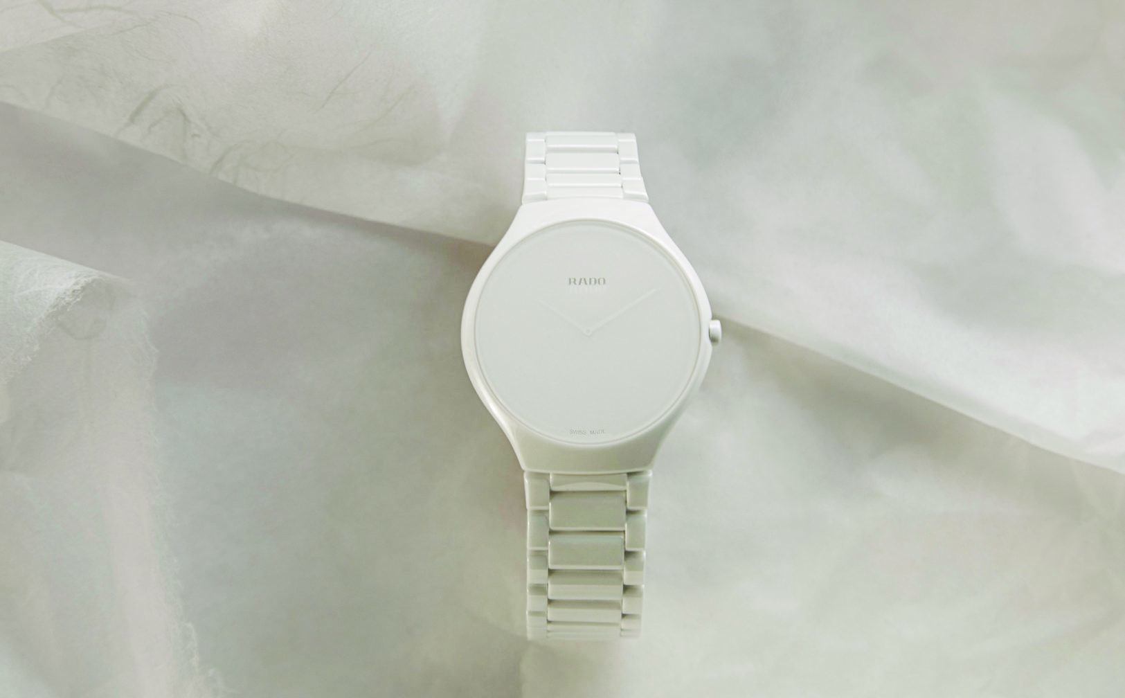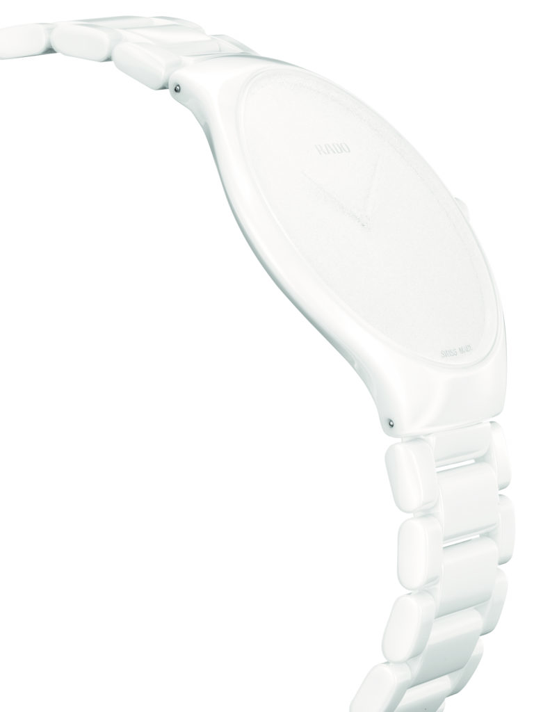 Asta nu înseamnă că nu indică ora, dar ar trebui să priviți cu atenție ceasul pentru a putea identifica ora exactă a zilei. Un cadran alb este prezentat sub cristal de safir cu efect alb mat, cu ore și minute abia vizibile, un logo Rado transparent și o brățară din ceramică de înaltă tehnologie, în culori asortate, care completează aspectul monocromatic al acestui ceas elvețian.