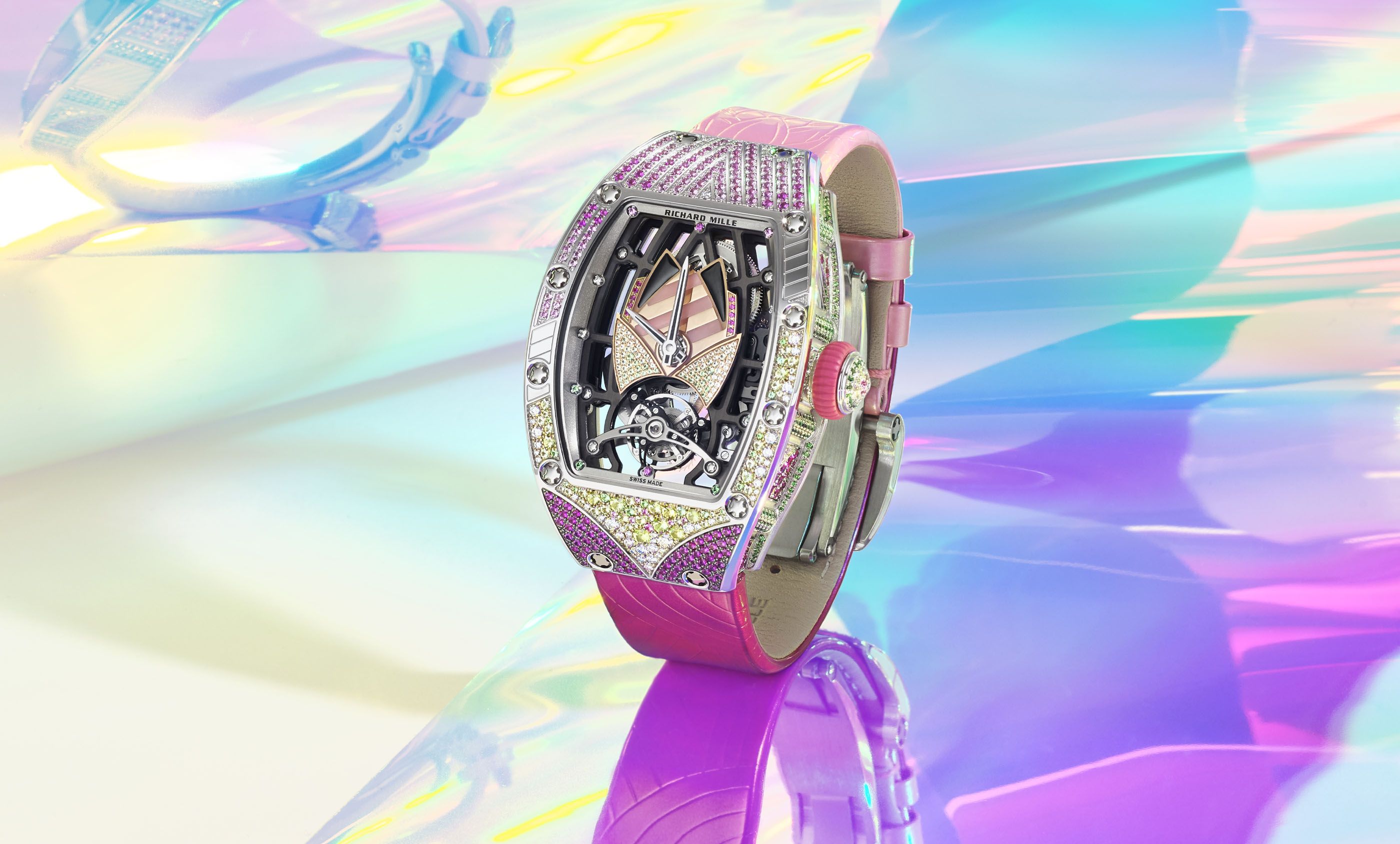 Acest ceas este decadență pură, realizată într-o culoare sclipitoare. Anii '70 au fost definiți de distracție fără scuze; tocmai același deceniu care a inspirat acest uimitor ceas Talisman RM 71-02, plin de pietre prețioase.