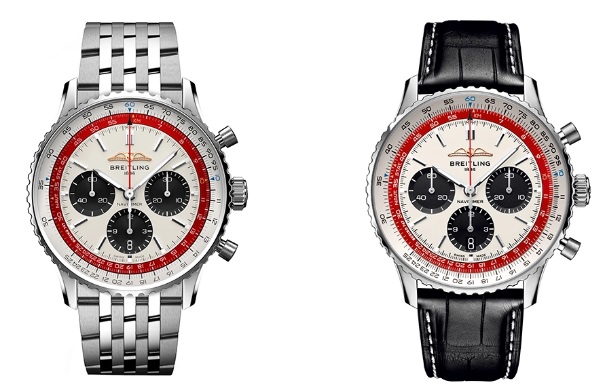 Amplasat într-o carcasă de 43 mm, Navitimer B01 Chronograph 43 Boeing 747 este fabricat din oțel inoxidabil elegant. Cadranul crem atrăgător, care oglindește ecranul de navigare al cockpitului, îmbină cadranele secundare negre cu o regulă de calcul roșu-alb. Fanii modelului 747 vor observa că schema de culori a ceasului seamănă cu cea a jumbo jet-ului original.