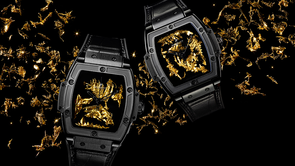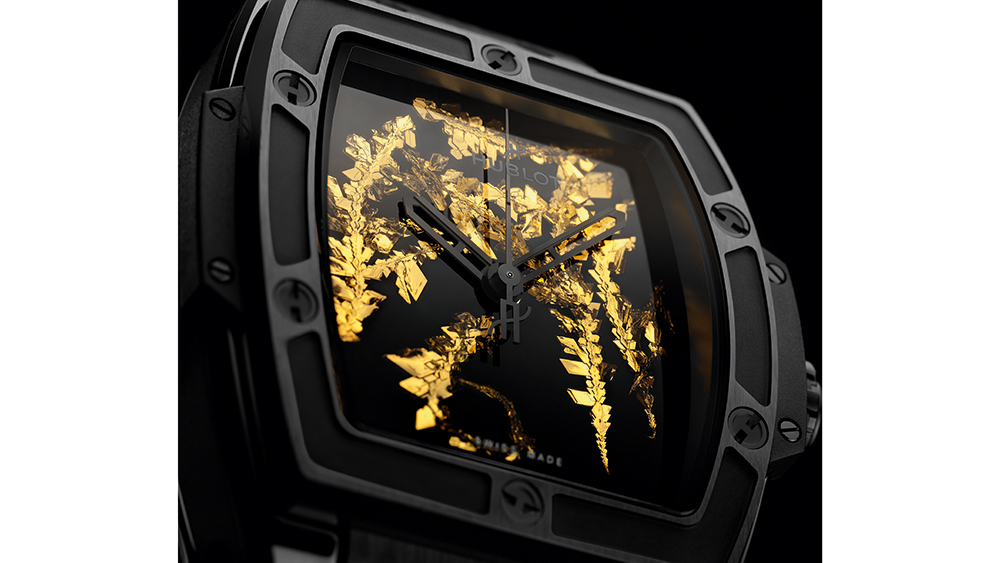 Pentru a obține starea naturală a aurului pentru cadranul ceasului, Hublot a dezvoltat o tehnică unică de reproducere. În primul rând, ceasornicarul încălzește cel mai pur aur de 24 de carate până la punctul său de topire de 1064,18 grade Celsius. Acest lucru vaporizează atomii formei sale metalice într-un amestec gazos înainte de a se bloca pe măsură ce temperatura este redusă, care formează apoi o structură unghiulară deschisă. De acolo, mii de cristale mici se unesc pentru a crea structuri unice. La sfârșitul procesului, producătorul selectează cu atenție cele mai bune cristale pentru a le adăuga fiecărui cadran. Nu mai mult de 20% din cristalele produse realizează tăierea finală.