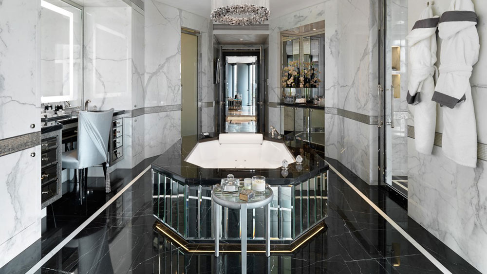 Penthouse-ul întins este un duplex, cu aproximativ 9.000 de metri pătrați de spațiu pe fiecare nivel. Are cinci dormitoare, deși poate fi transformat într-un apartament cu șapte paturi. Suita principală este de departe cea mai frumoasă parte, cu vedere asupra Hyde Park, două dressing-uri cu baie privată și două băi.