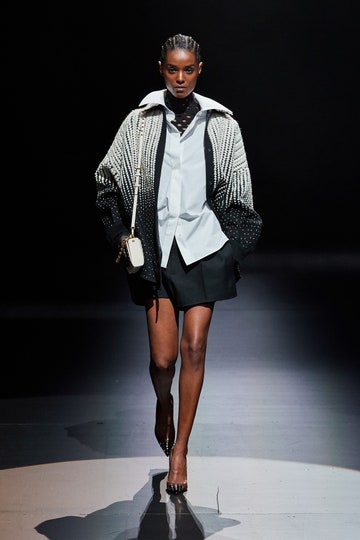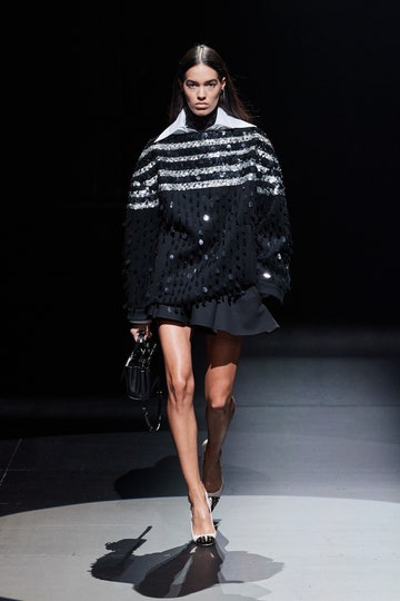 Ochiurile, punctele și dungile nestructurate punctează colecția, uneori tipărită, țesută sau în plasă. O lucrare grafică ultra-lizibilă susținută de bogăția texturilor și aspectul pielii, ca un trompe l'oeil de material, și o atingere optică care dă ritm colecției.