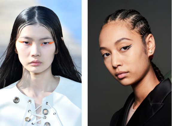 Conturul de ochi este o tendință majoră în această primăvară, dar caracterizat de originalitate. Renunță la linia neagră simplă și fă loc culorilor, aplatizării grafice, iluziilor optice și liniilor nestructurate. Găsește-ți inspirați din look-ul spectacolului de primăvară-vară 2022 de la Givenchy, încadrat cu linii ca penele, o referință la cultura cartierului Harajuku din Tokyo, conturul dublu văzut la Dior pentru un efect felin sau chiar linii neon la Chloé sau sclipici la Kenneth Ize.