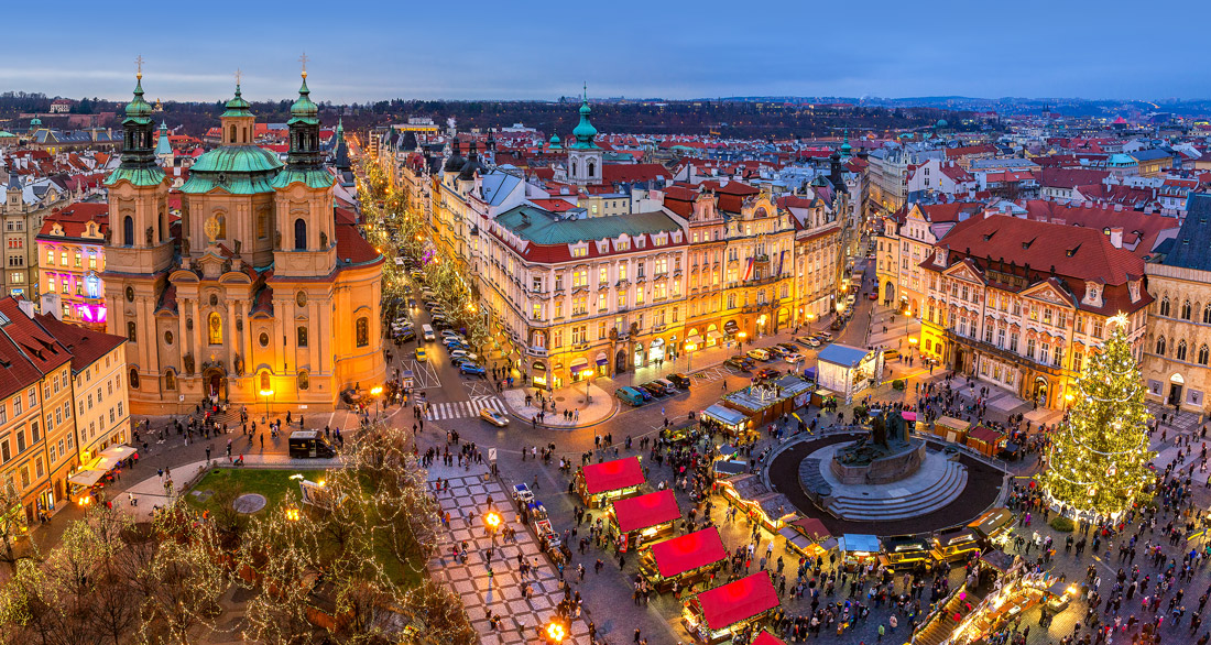 Praga, basmul gotic al Europei, sărbătorește Crăciunul cu glam și grandoare, arhitectura uluitoare a orașului oferind un fundal cu adevărat dramatic pentru a sorbi liniștită un vin parfumat și a te pierde în frenezia cumpărăturilor de Crăciun. Iarna în capitala Cehiei este rece, dar mersul pe aleile pietruite care șoptesc despre fantomele unui trecut zbuciumat, de-a lungul superbelor clădiri gotice acoperite cu zăpadă proaspătă, este ca și cum ai păși într-o felicitare de Crăciun. Târgurile de Crăciun din Praga sunt printre cele mai renumite din Europa, oferind o oportunitate excelentă de a descoperi tradițiile, valorile culturale și bucătăria delicioasă a acestei țări din Europa Centrală. Cel mai mare, cel mai vechi și cel mai impresionant este cel amplasat în Piața Vechiului Oraș, la poalele Bisericii Maicii Domnului. Cu toate acestea, cele deținute în Piața Wenceslas și Náměstí Míru sunt la fel de atrăgătoare.