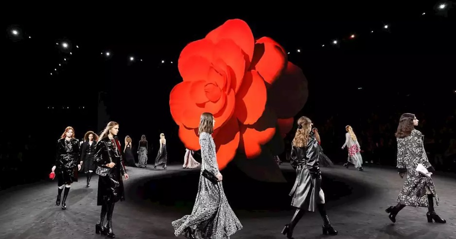 Sub imensele petale ale unei camelie gigantice din centrul catwalkului, icoana florală Chanel apare de la cea mai mică la cea mai spectaculoasă, de la cea mai evidentă la cea mai elaborată, foarte couture, sculptată sau brodată. Aducând un parfum de moliciune la modă de iarna viitoare, colecția emană o eleganță supremă, o combinație de alb și negru punctat cu roz și stropi de roșu.