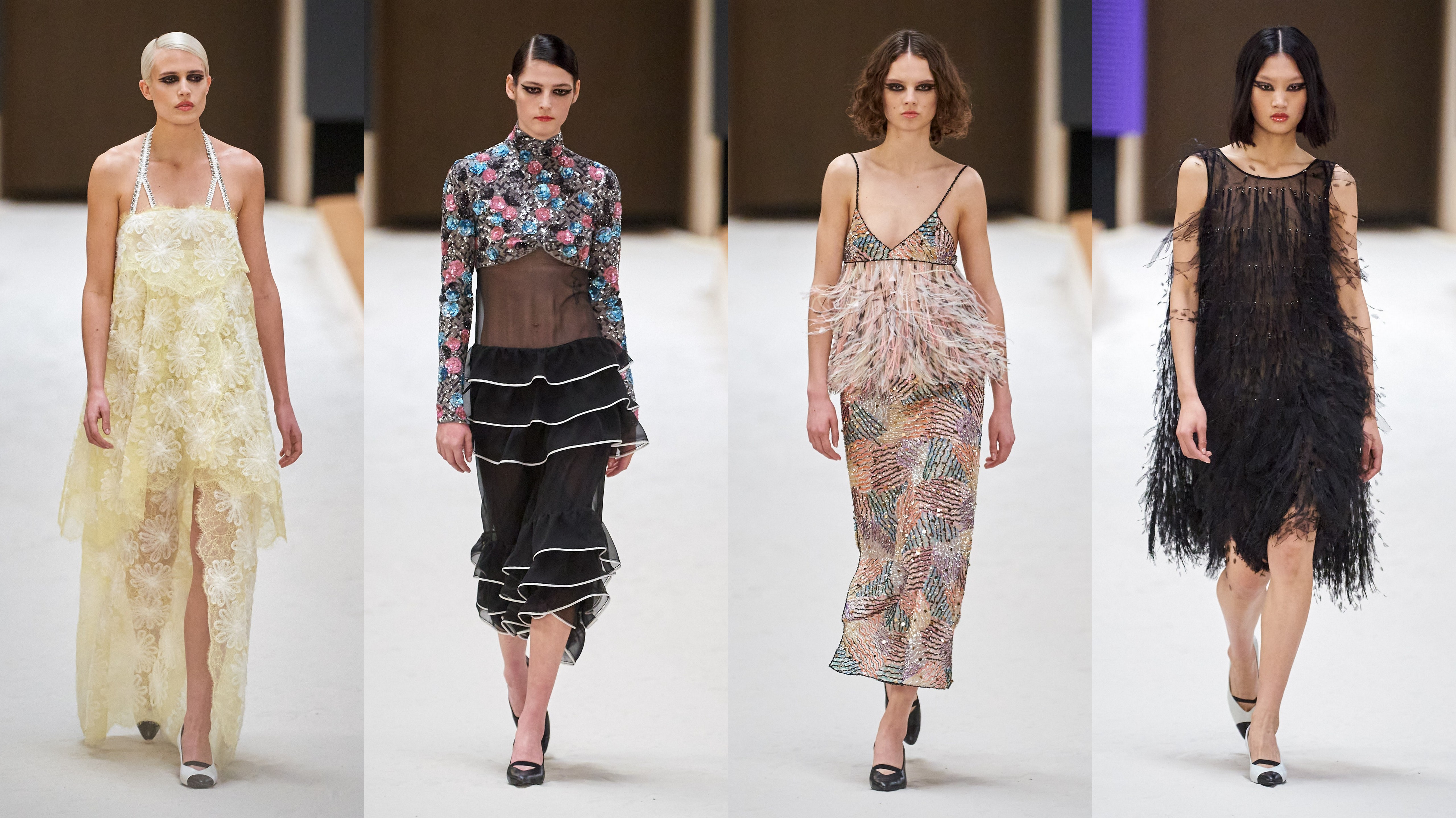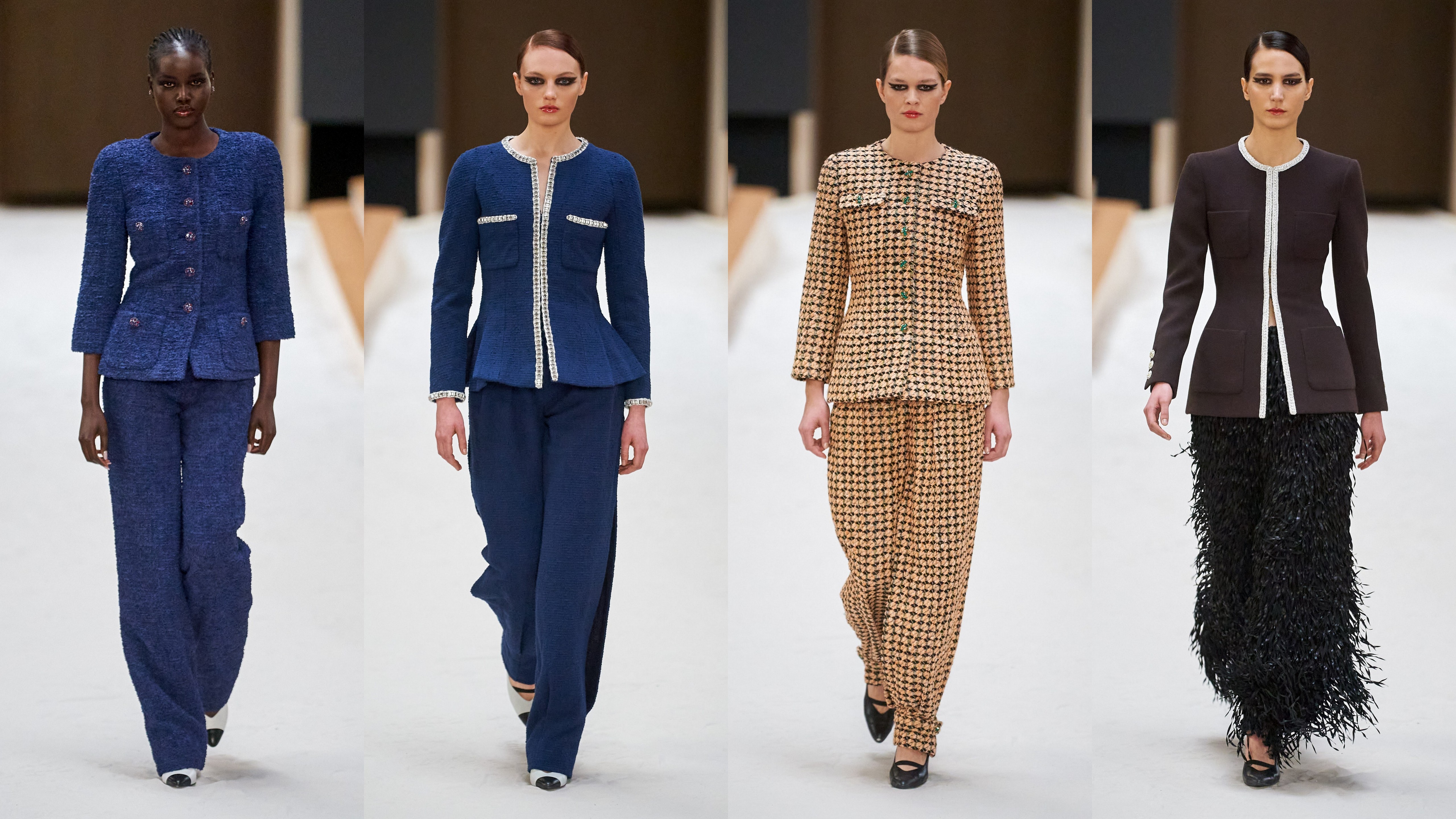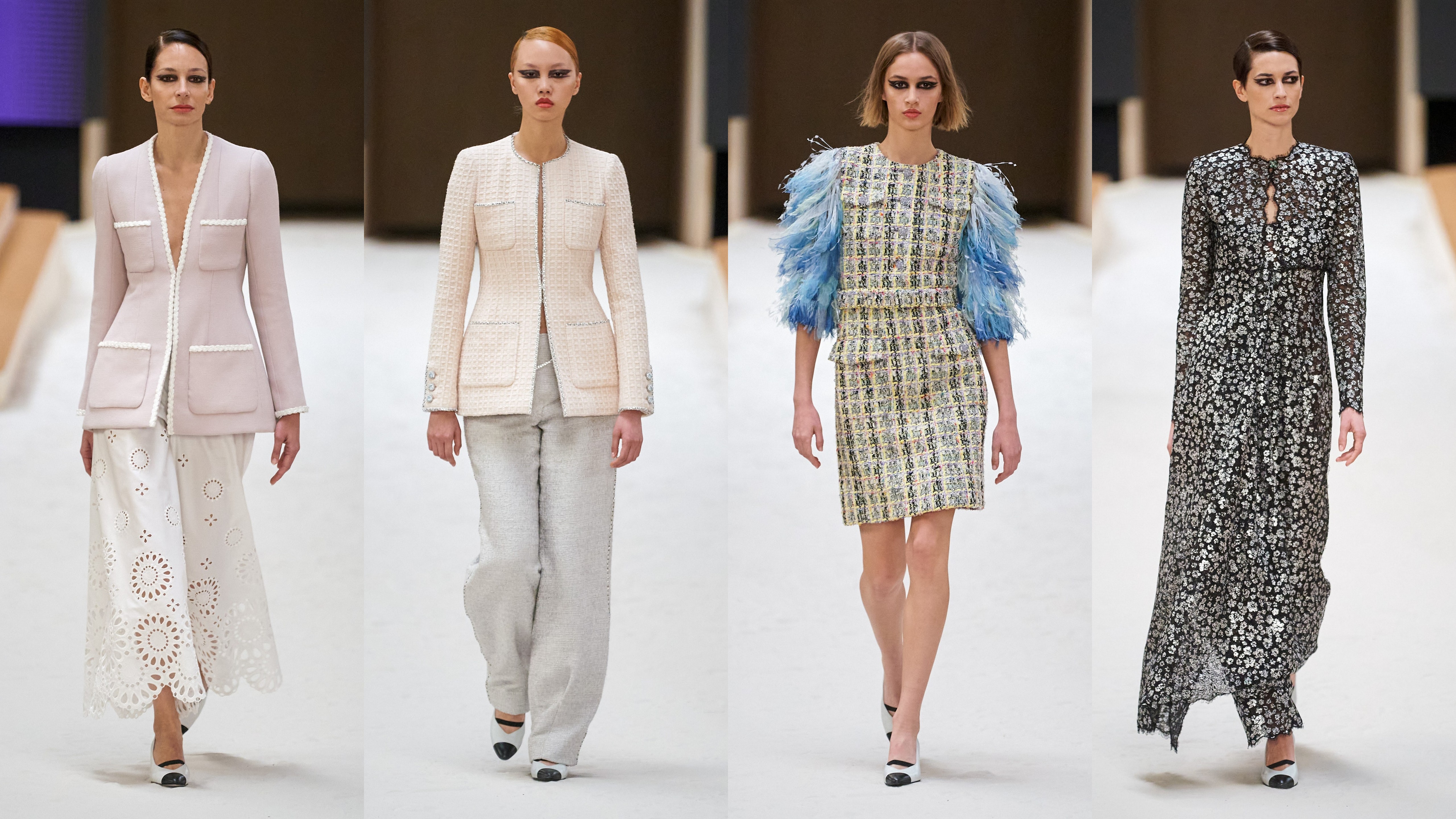 „Aceste forme geometrice m-au făcut să vreau contraste, lejeritate și multă prospețime: rochii eterice care parcă plutesc”, explică Virginie Viard, director artistic Chanel. O mulțime de volane, franjuri, macrame, dantelă strălucitoare, tweeduri irizate, nasturi de bijutier colorați. Pe seria primelor costume, celebrele tweed-uri ale casei iau locul firului roșu, sunt înmuiate, reluate, dezvăluind tușe de dantelă delicată, lejeră și meticuloasă. Se întind pe jachete, arată atât casual, cât și formal. Ținutele nu sunt spectaculoase, dimpotrivă dezvăluie o colecție de o simplitate rafinată care presupune, atunci când privești mai atent, o lucrare asupra materialului. „Bretele alcătuite dintr-o împletitură albă brodată cu perle sau lanțuri argintii, pantofi Mary-Jane în două tonuri cu tocuri inspirați din anii 1920 revăzuți prin anii 1980”.