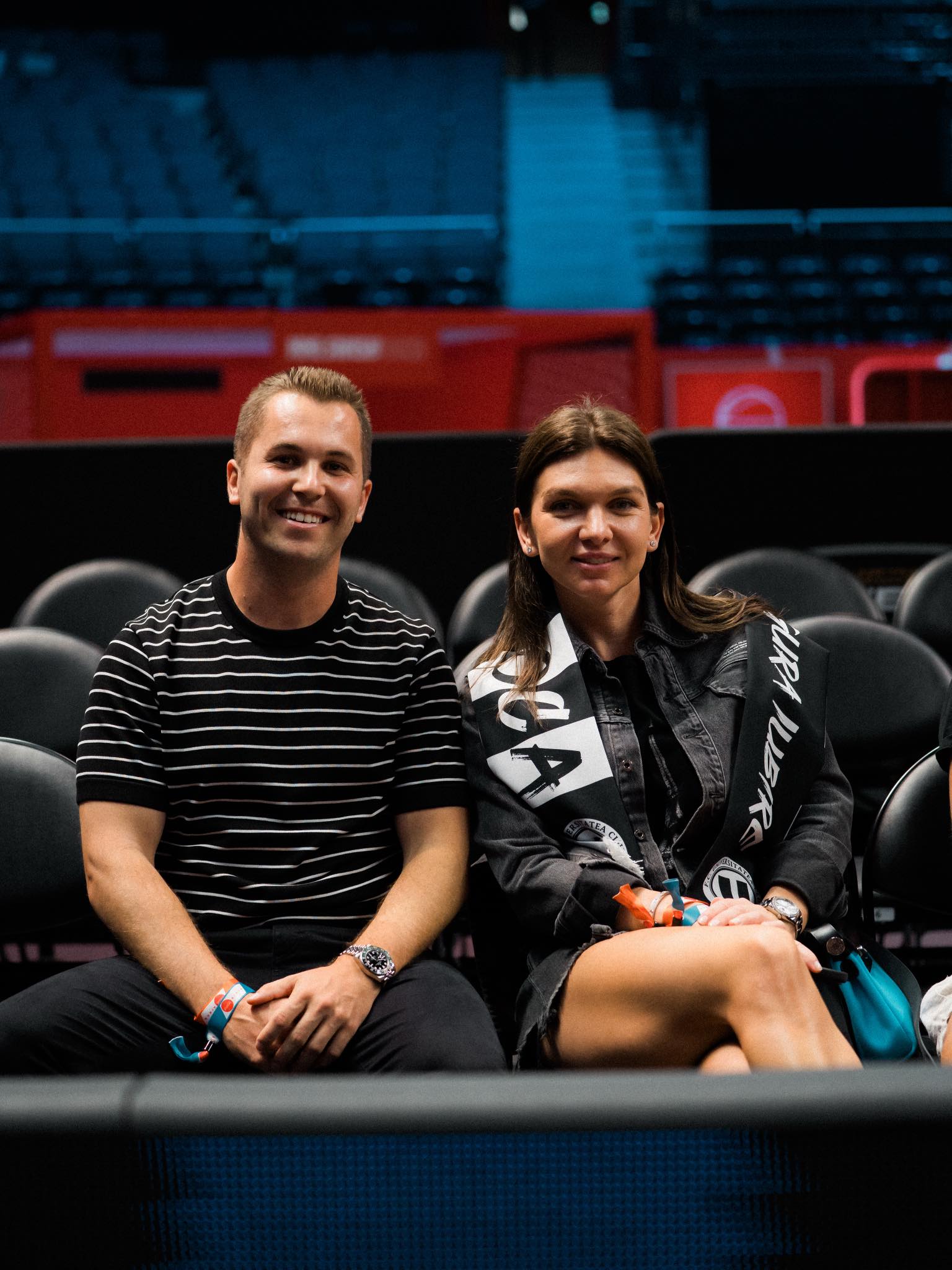 Într-o postare pe Instagram Stories, Simona Halep a publicat o fotografie realizată înainte de meci, în care apare purtând fularul echipei U-BT Cluj-Napoca, semn că sprijină echipa românească și din tribune.