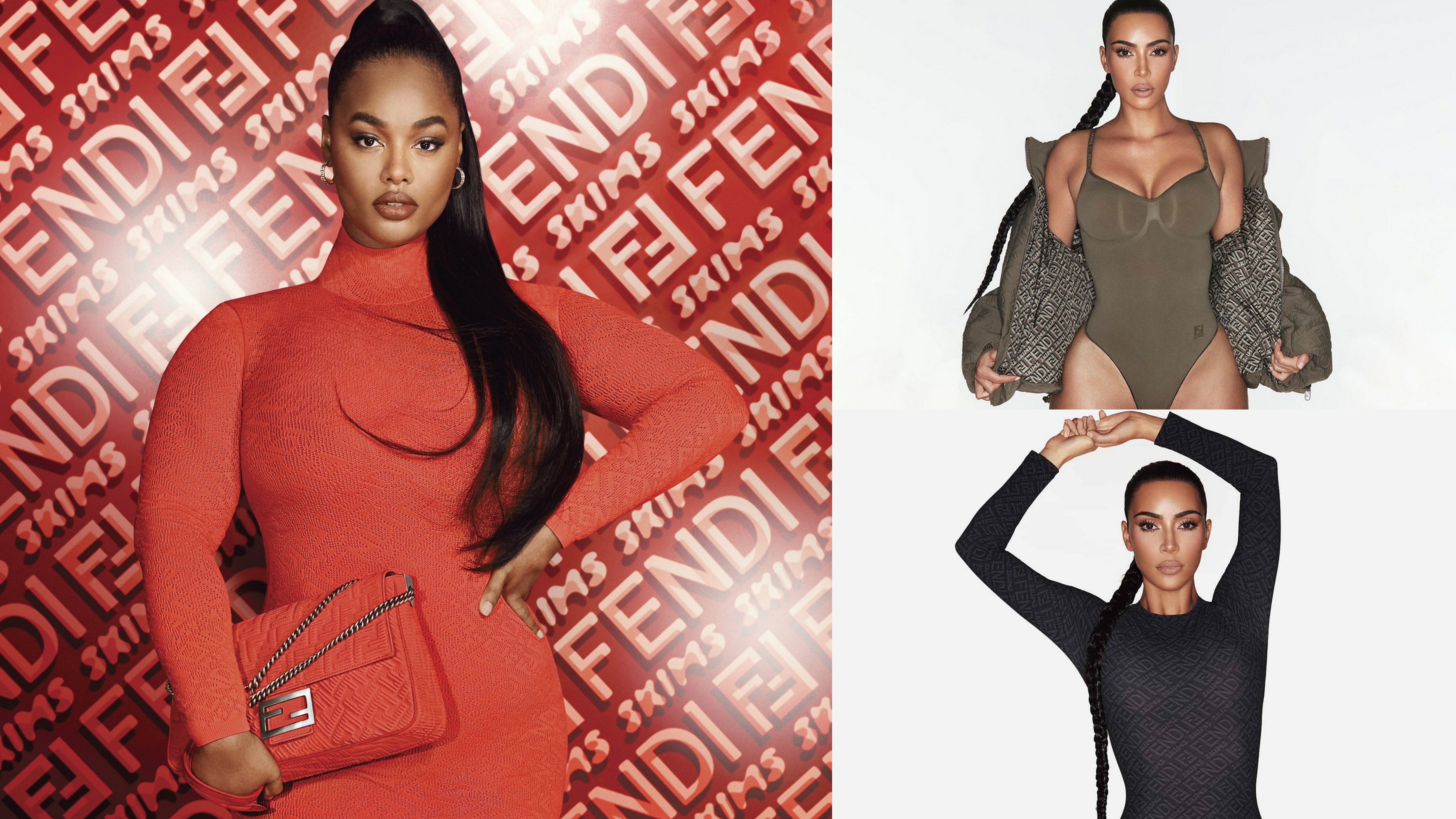 Colecția capsulă Fendi x Skims apare pe 9 noiembrie pe un site de comerț electronic. Modelele care prezintă piesele din colecție sunt Kim Kardashian, Precious Lee, Tianna St. Louis, Jessie Li și Grace Valentine.