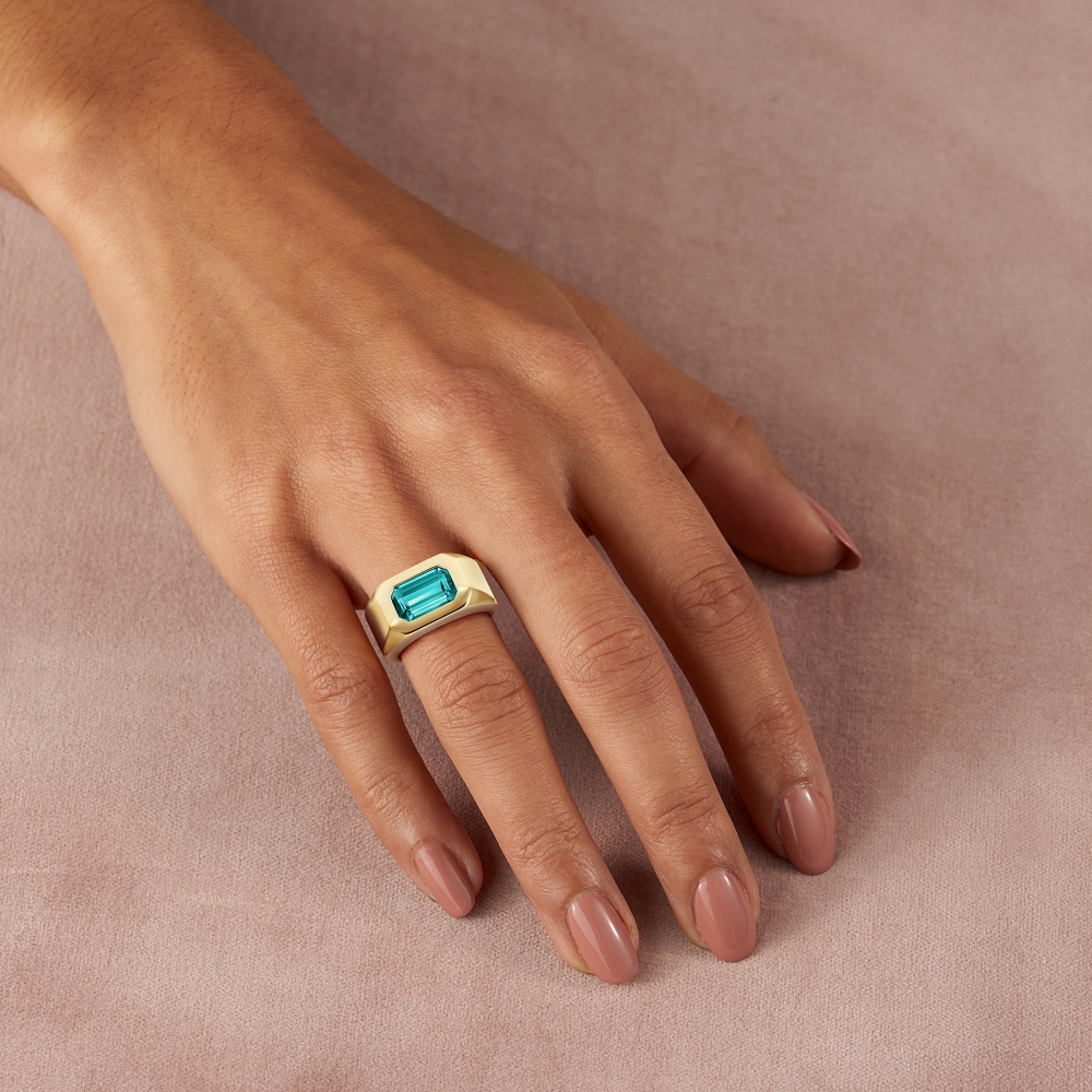 Fidel stilului designerului Lucy Crowther, inelele sunt relativ minimaliste, făcându-le piese versatile care pot trece cu ușurință de la zi la noapte. Opulența deceniului se află în piatra prețioasă centrală, redată într-o paletă vibrantă de tanzanite, turmaline și safire. Fiind o notă finală, fiecare inel vine cu o pană gravată în interiorul corpului inelului - un semn subtil către glamourul Berlinului și faimoasa sa scenă de cabaret.