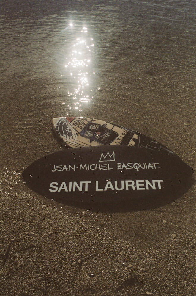 Anthony Vaccarello, directorul creativ al Saint Laurent, aduce un omagiu marelui pictor american Jean-Michel Basquiat, cu o colecție de articole, inspirată de munca și moștenirea artistului. Colecția capsulă include genți, rucsacuri, skimboards, skateboard și o husă pentru telefon.