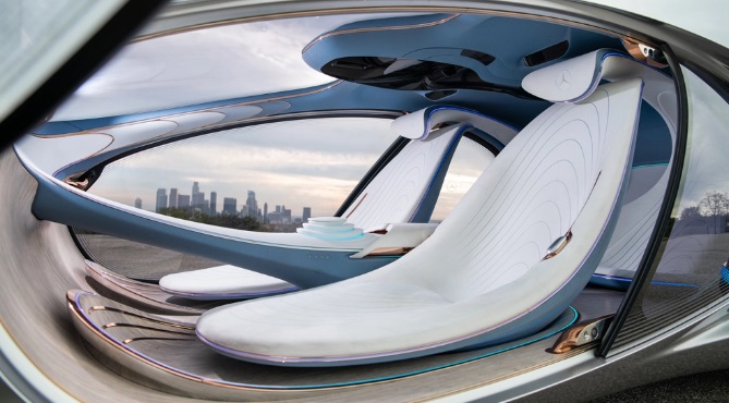 Crearea Vision AVTR nu a fost un efort unilateral, ci mai degrabă o colaborare. Forma organică este încapsulată într-un așa-numit design cu o singură arcă, un singur gest de-a lungul liniei acoperișului pe care Mercedes l-a reflectat asupra tuturor, de la conceptul F 015 la mașina de serie EQS . Interiorul și exteriorul vehiculului sunt conectate prin lumini pulsate din fibră optică, despre care Mercedes sugerează că reprezintă „căi nervoase” și „fac fluxurile de energie și informațiile vizibile în roți”.