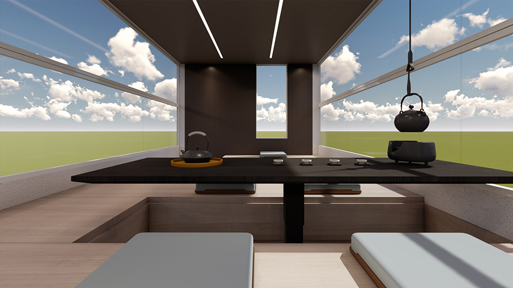 Zona este accesibilă printr-un mic lift și a fost proiectată cu gândul la odihnă și relaxare. Spațiul este mai mic decât cel din nivelul inferior, dar există mai mult decât suficient spațiu pentru a-l transforma într-o zonă de practicat yoga, de exempșu. Există, de asemenea, o mică terasă deasupra cabinei șoferului, dacă aveți nevoie de puțin aer.