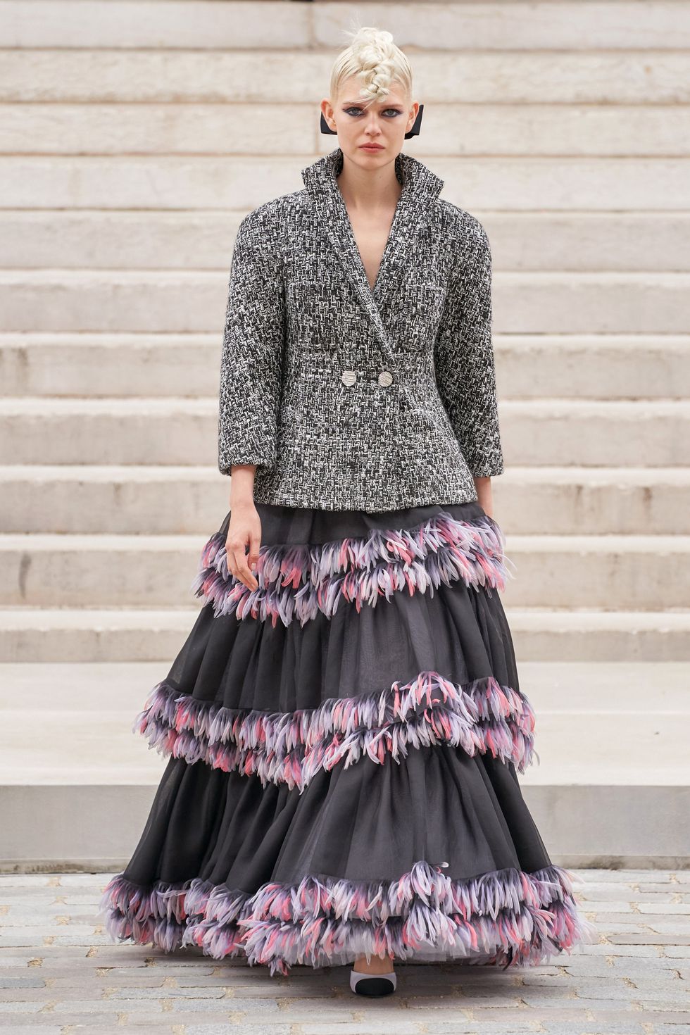 Fustele mari, pline, își găsesc scopul în urma unei pandemii care ne-a alimentat atașamentul față de haine confortabile. Atât confortabilă, cât și elegantă, fusta plină evocă un sentiment de romantism, așa cum se vede în siluetele feminine complete la spectacolele de modă Chanel și Dior.