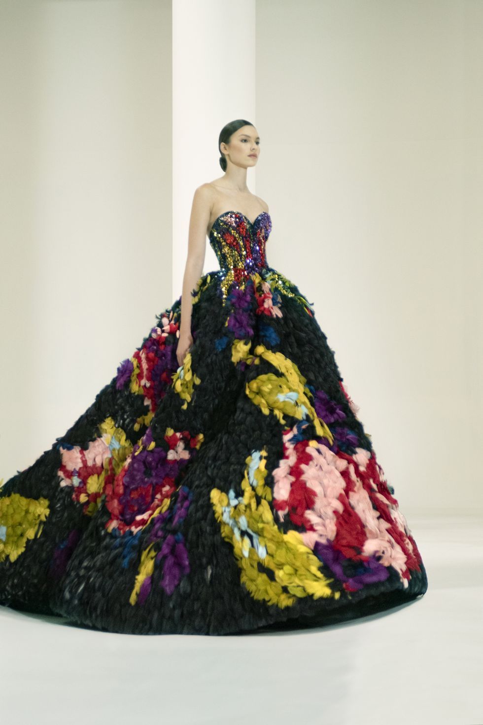 Țesăturile care conferă unei piese de îmbrăcăminte ritm propriu în fiecare pas sunt realizate doar cu cea mai bună măiestrie. La Elie Saab, țesătura preferată apare pe o rochie fără bretele în care ținuta pare mai mare decât cea reală, cu o grădină care iese din rochie. Straturile vibrante ale halatelor pline și ciufulite aduc o energie de lumină. Designerul francez în vârstă de 24 de ani, Charles de Vilmorin, a prezentat prima sa colecție couture folosind detalii cu pene pe îmbrăcăminte complet negre pentru a arăta mișcare dinamică, chiar și atunci când vine vorba de colorarea solidă.