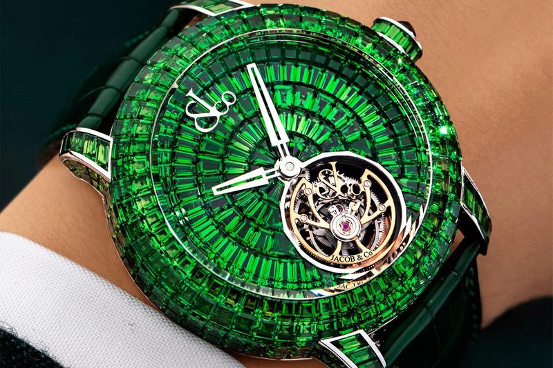 Aproximativ 388 de tsavorite de înaltă calitate, tăiate în baghetă, au fost folosite pentru a acoperi carcasa, rama, fața și coroana din aur alb de 18k de 47 mm. Acest lucru poate părea puțin exagerat, dar oferă ceasului un aspect uimitor de verde, care este greu de uitat. Singura parte a ceasului care nu este acoperită cu pietre este cureaua, dar chiar și aceasta este din piele de aligator verde.