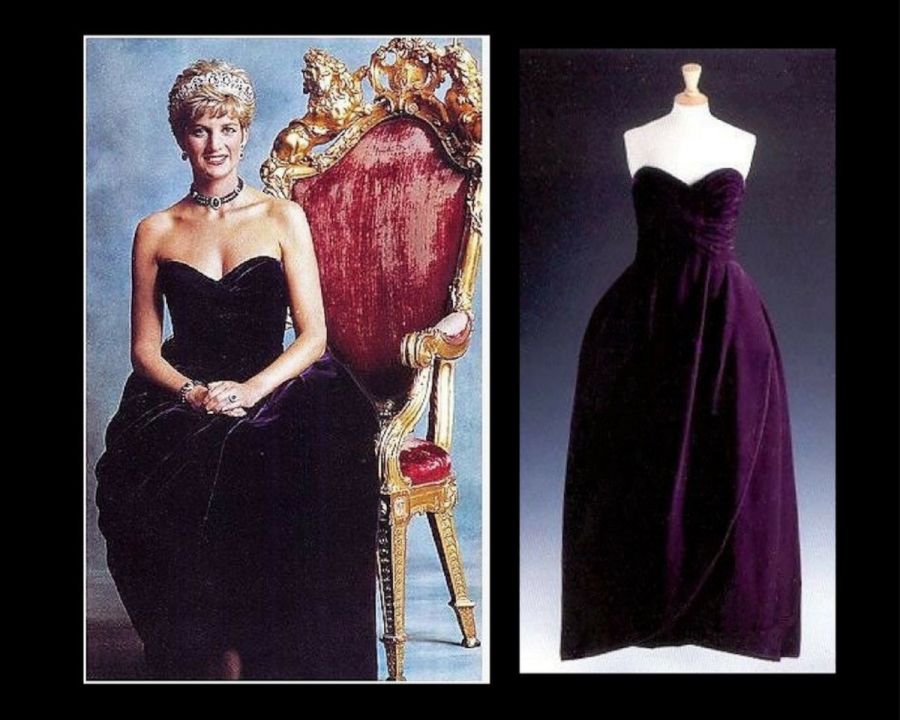 Diana a văzută ultima dată în rochie pentru o piesă editorială publicată de Vanity Fair cu puțin timp înainte de moartea ei tragică, în 1997, care conținea imagini cu Prințesa purtând rochiile ei preferate, conform casei de licitații Sotheby's.