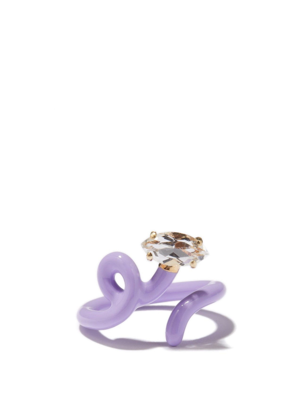 Combinați puloverul alb cu un inel pop și colorat și demn din anii 2000.
