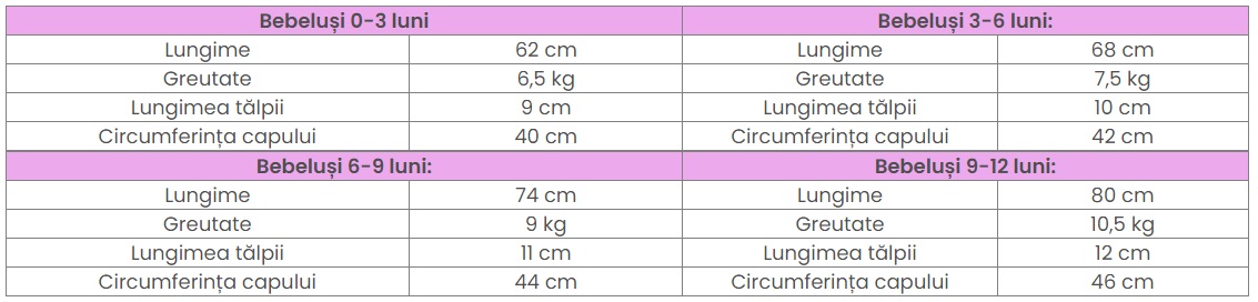 Vom începe cu cel mai simplu și util mod de a alege măsura potrivită micuțului vostru: tabelul de mărimi.