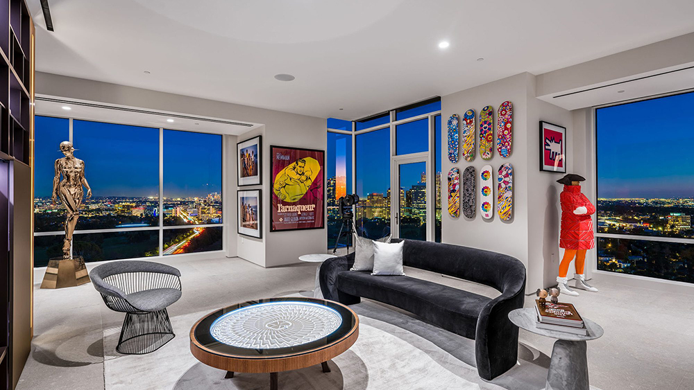 Penthouse-ul scos la vânzare de cântărețul canadian are un lift privat și o vedere panoramică asupra întregului Los Angeles, de la centul orașului și până la Hollywood Hills și Oceanul Pacific. Este dotat cu o bucătărie ca cea dintr-un restaurant și o sală de sport privată, atașată de dormitorul matrimonial. Decorată în stil masculin, în nuanțe de gri și maro, locuința este plină de piese de artă modernă.