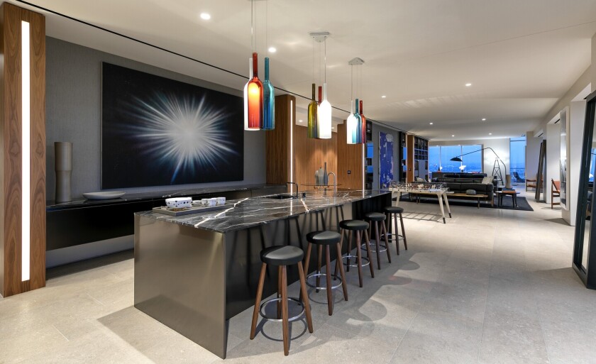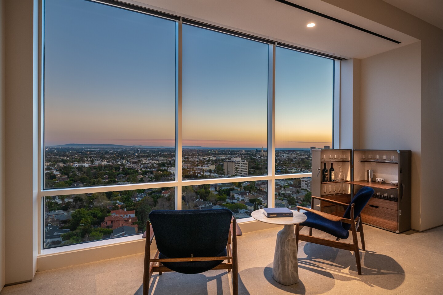 Clădirea în care se află apartamentul are 22 de etaje și oferă acces la o piscină cu apă sărată, la spa, la parcare cu valet și heliport.
