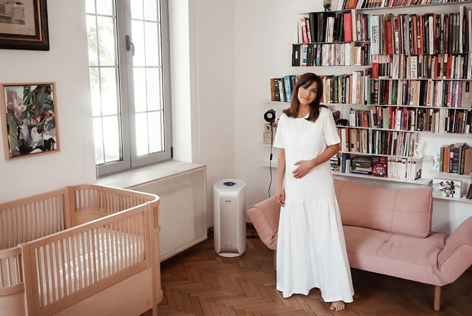 "Mai sunt doar câteva zile până când voi aduce pe lume al doilea copil. Scriu aceste cuvinte și mă apucă emoțiile! Aaaaa! Bun, să revenim la subiect. Am montat pătuțul și masa de înfășat, am ales canapeaua pe care voi alăpta nopțile și am mutat purificatorul din mansardă, în acest loc "strategic", pentru că micuța mea să respire un aer cât mai curat posibil. Vlad a făcut la naștere dermatită atopică.