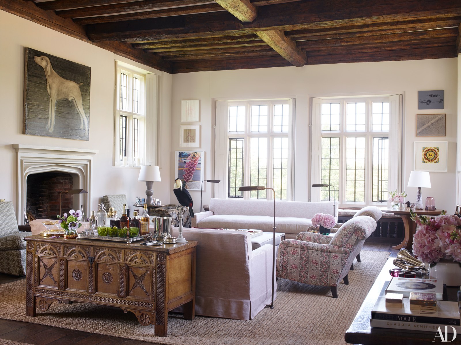 În ceea ce privește interiorul, Schiffer l-a modificat foarte puțin, deoarece mobilierul este un amestec fascinate de piese tapițate cu piele, lemn, antichități și moșteniri de familie. „Poveștile pe care le spun aceste lucruri sunt importante”, spune ea.