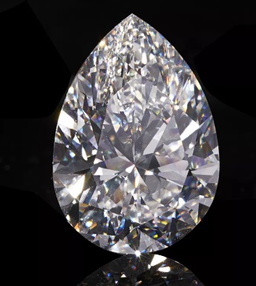Diamantul în formă de pară a fost extras dintr-o mină din Africa de Sud. O piatră de dimensiuni comparabile, 163,41 carate, a foat vândută tot de Casa Christie’s în 2017, pentru 33.701.000 dolari.