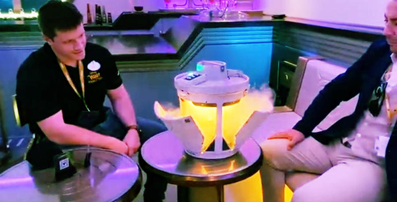 O înregistrare video apărută pe platformele social media arată exact ce vor primi clienții pentru suma impresionantă, băutura ajungând la masă într-un camtono (containerul de securitate folosit pentru păstrarea lucrurilor de valoare în serialele The Mandalorian și Cartea lui Boba Fett) și este dezvăluită după învârtirea unui buton care face cilindrul rotund să se deschidă.