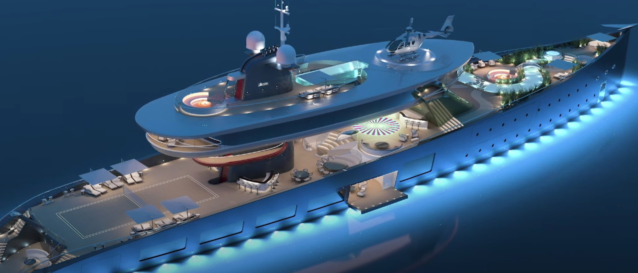 Deocamdată, este un concept cu redări fantastice care ne arată minunea imaginației unui om. Monaco Yacht Show se va desfășura în perioada 22-25 septembrie, unde această minunată ambarcațiune va fi prezentată de șantierul naval german Lürssen. Să aruncăm o privire în această țară a minunilor pe apă.