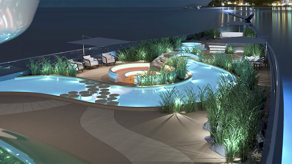 Într-o primă încercare de acest gen, designerii au folosit în întregime puntea exterioară extinsă și deschisă, cu micul său parc natural, care permite multe activități distractive. Ideea a rezultat din feedback-ul multor proprietari care spun că salonul principal nu este folosit atât de mult.