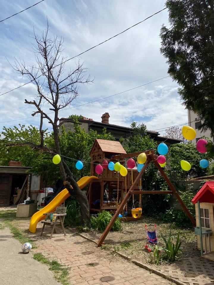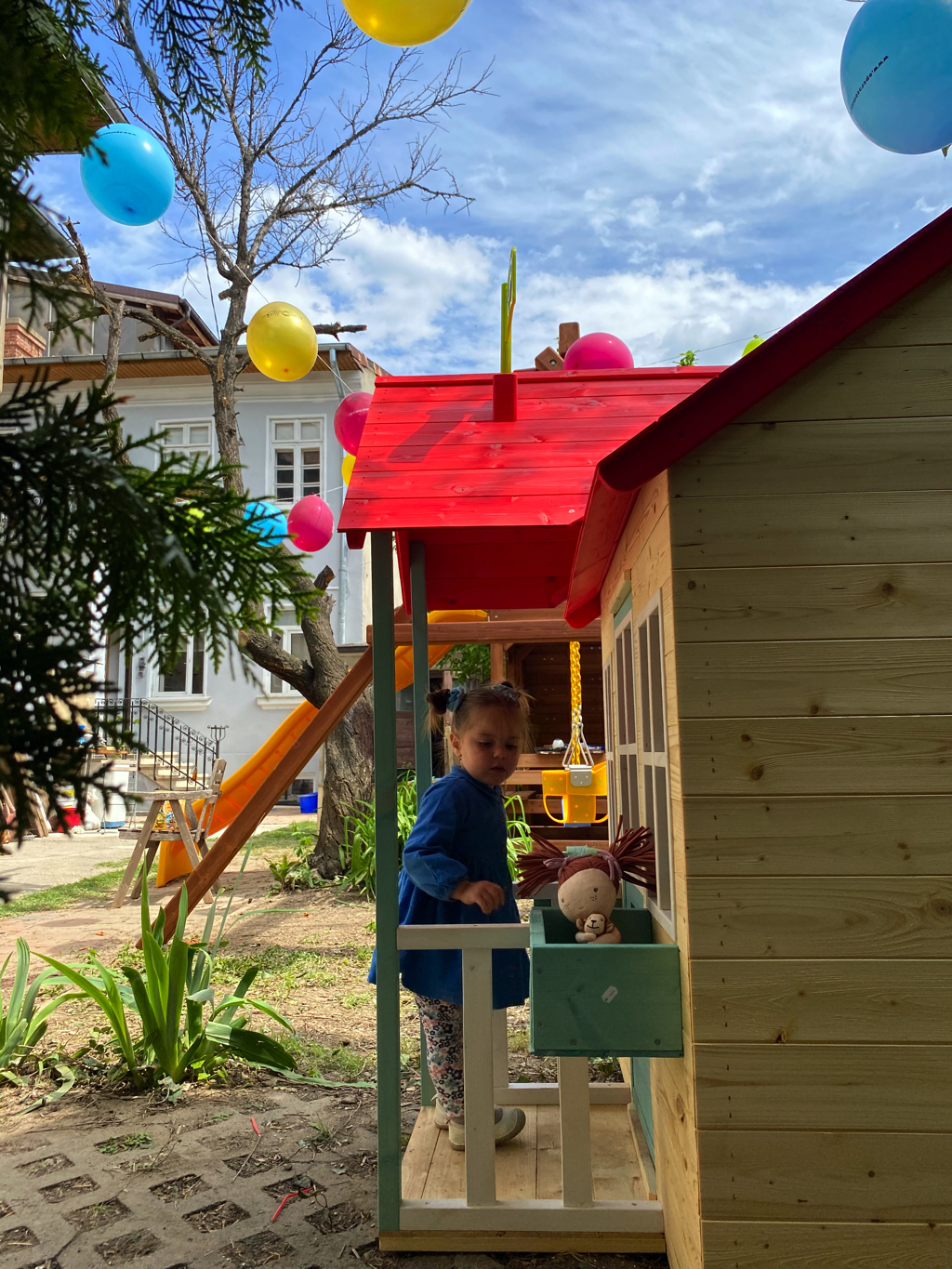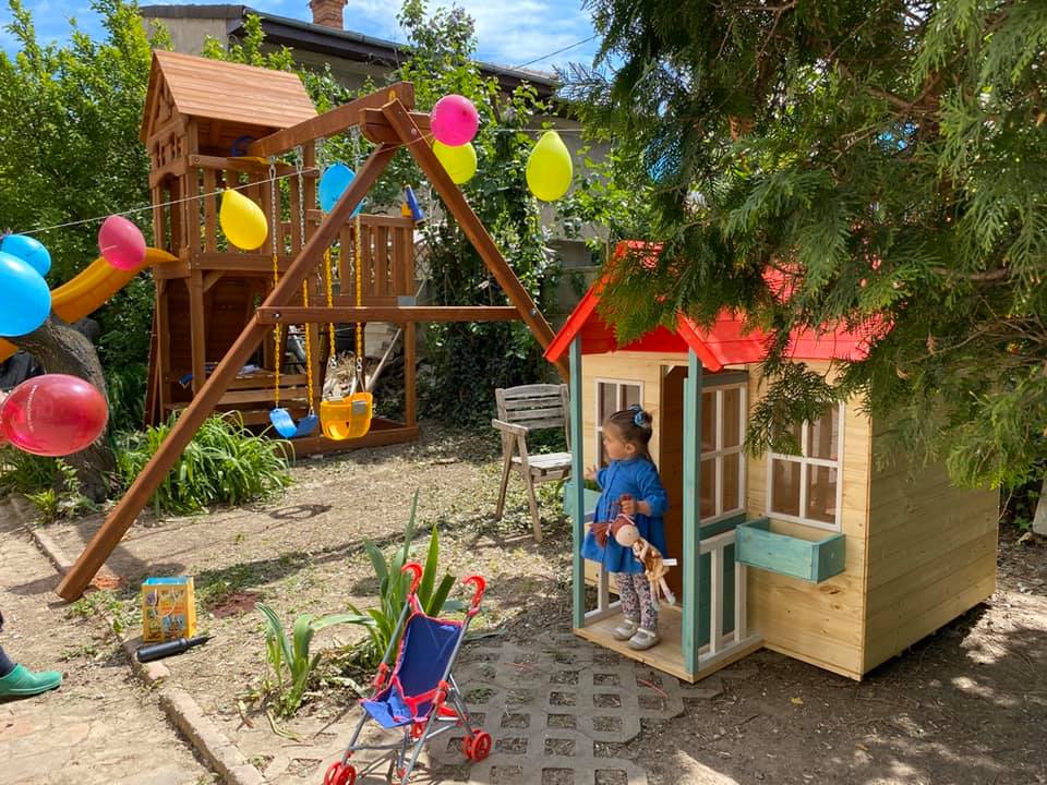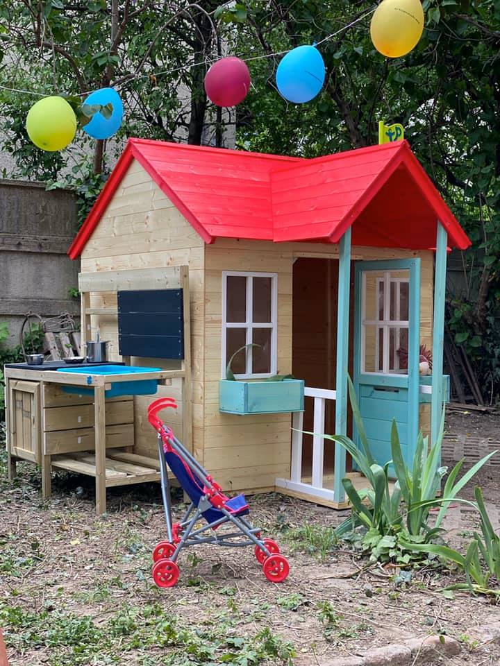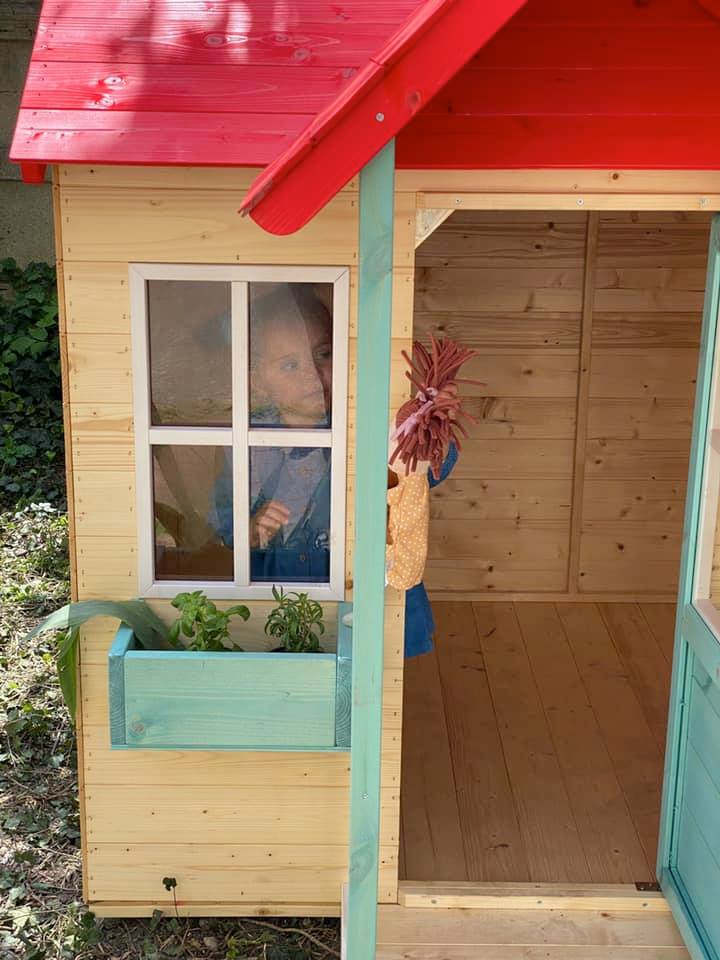 Am intrat în autoizolarea aceasta, iar pentru că grădinițele și creșele sunt închise, locurile de joacă pentru copii la fel și pentru că se spune că vor fi valuri, valuri de situații că această prin care trecem acum, ne-am gândit la o soluție. Cum tot se apropie ziua Ritei și mai vine și surioara, iar locurile de joacă sunt inaccesibile, am făcut un mic parc de distracții – colorat, vesel și atât de frumos că-mi vine să mă joc și eu – chiar în curtea noastră. Inițial, mi-am dorit pentru Rita o căsuță din lemn, eventual cu bucătărie, unde să se joace, să-și ascundă lucruri, în fine, să aibă un loc al ei de joacă, unde să nu între părinții toată ziua. Am pornit de la căsuța din lemn și am ajuns la lădița cu nisip. Apoi am mai adăugat și huța, că ii place teribil să se dea în leagăn și oricum aveam unul, dar cam mic.