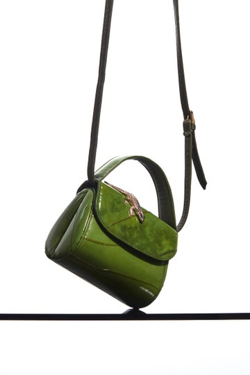 Derivată din planta braziliană Alocasia Macrorrhiza, cunoscută și sub numele de „Urechi de elefant”, frunza beLeaf este tratată cu uleiuri organice și apoi lăcuită cu un amestec de in și poliester. Această frunză rezultă astfel într-o viziune cu totul nouă asupra Baby Abag, o geantă realizată 100% manual. Costă 595 euro.