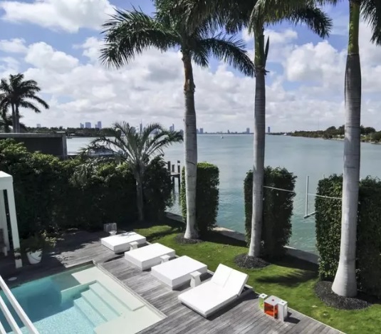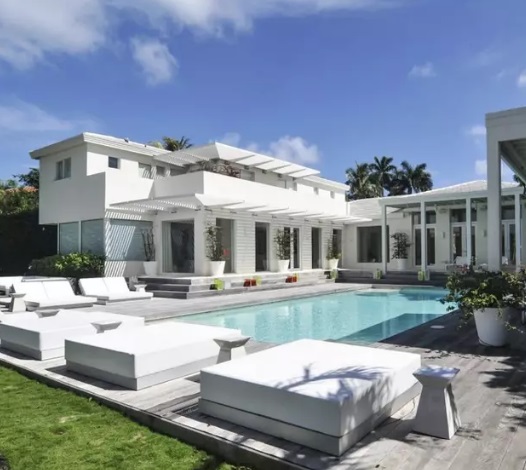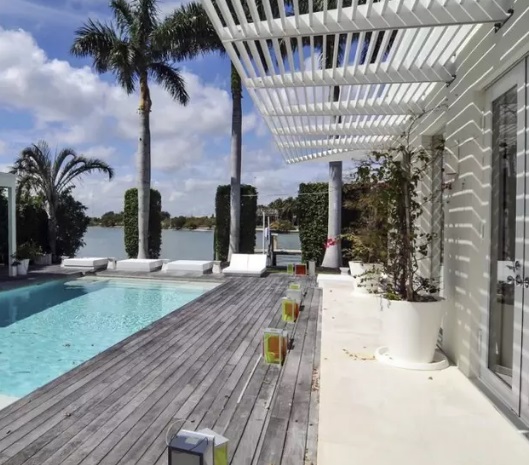 Acest conac exclusivist din Miami a fost construit în 1951, are o suprafață de 2.000 de metri pătrați, șase dormitoare, șapte băi, sală de fitness, zonă multimedia, sală de biliard, garaj, terasă, piscină, zonă de SPA, o cabană cu bar și o ieșire la ocean spre Golful Biscayne.
