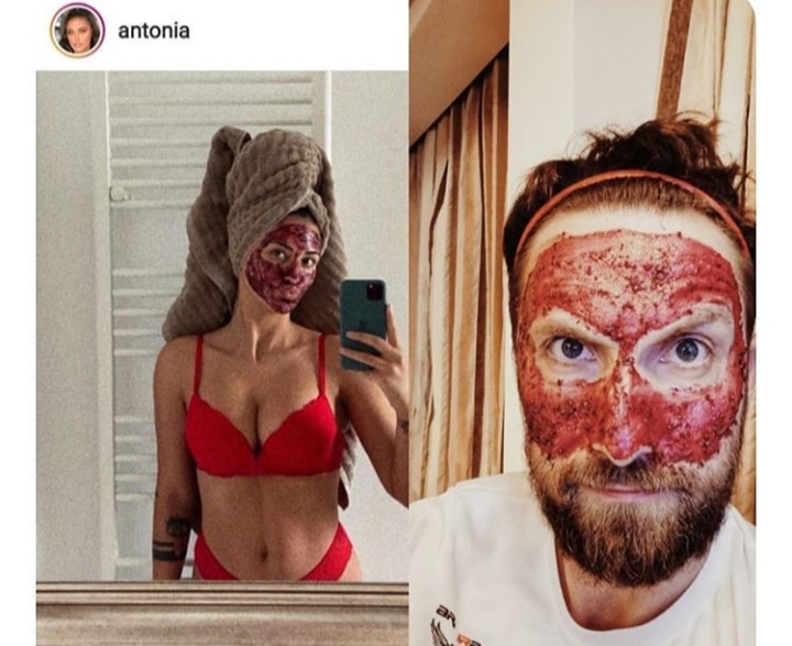 Însă Dani pare un super erou care se uită foarte încruntat. Această postare de pe instagram a primit 130 de comentarii și peste 7.200 de aprecieri. Un urmăritor i-a sugerat lui Dani să pună și puțin gem de căpșuni pe față dacă nu-i ajunge masca. Un altul l-a întrebat dacă el a comandat-o pe Antonia sau crema, pentru că nu se prinde. Iar o altă fană i-a sugerat să dea jos barba.