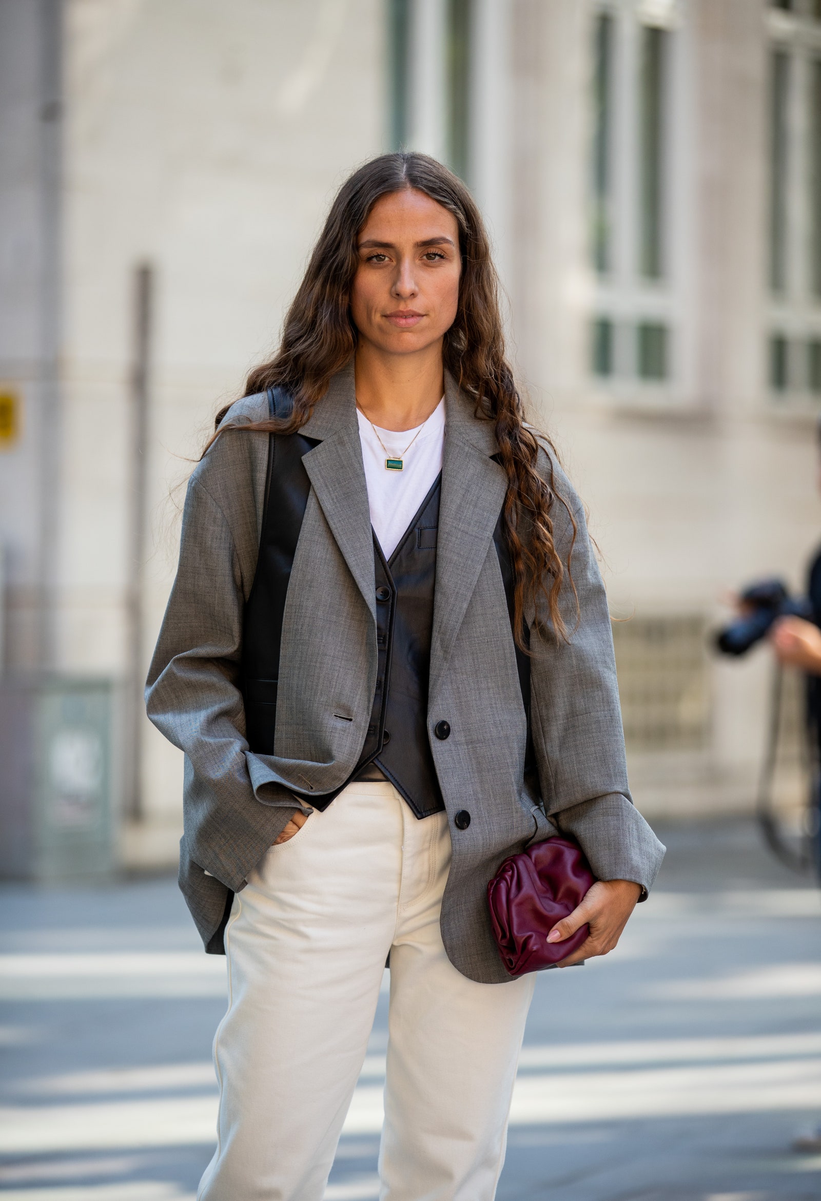 Erika Boldrin într-un blazer supradimensionat pe străzile Londrei în septembrie 2019.