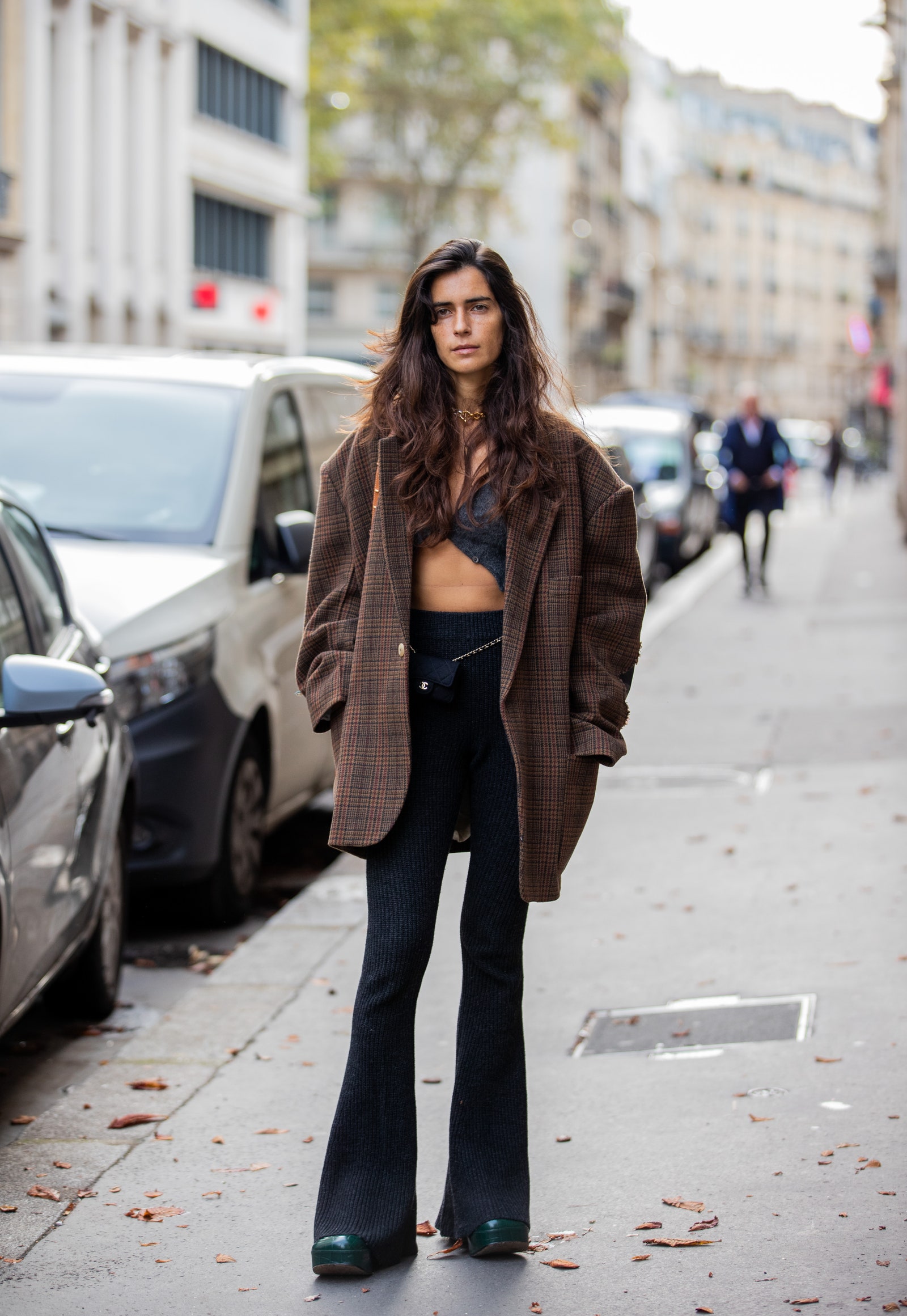 Chiara Totire într-un blazer supradimensionat în timpul Săptămânii Modei de la Paris primăvară/vară 2022.