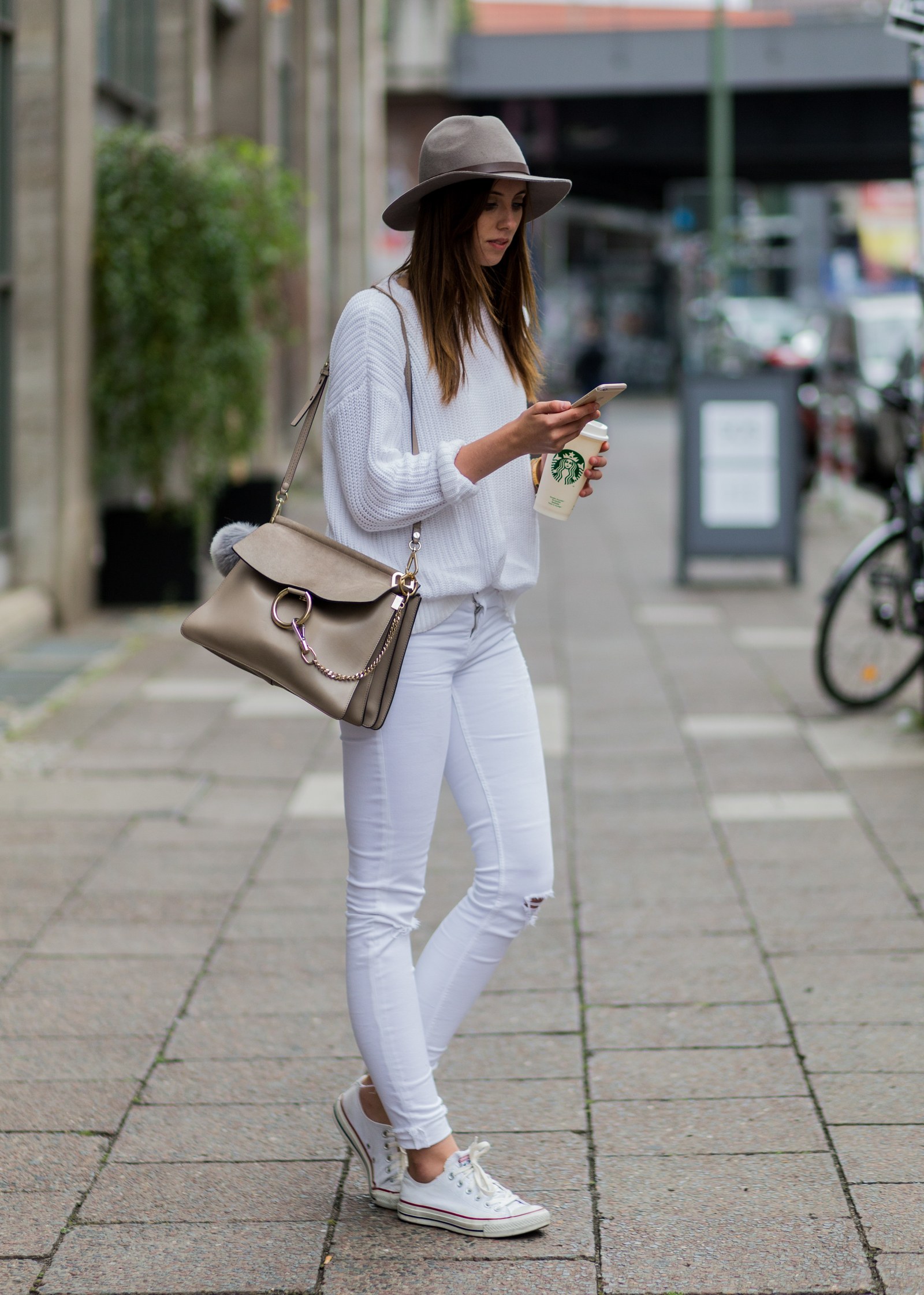 Această regulă e depășită. Jeanșii albi se pot purta cu pulovere supradimensionate, cizme înalte, jachete din fleece confortabile și paltoane de iarnă. Nu numai să sunt extrem de ușor de asortat cu orice, dar ies niște ținute foarte cool.