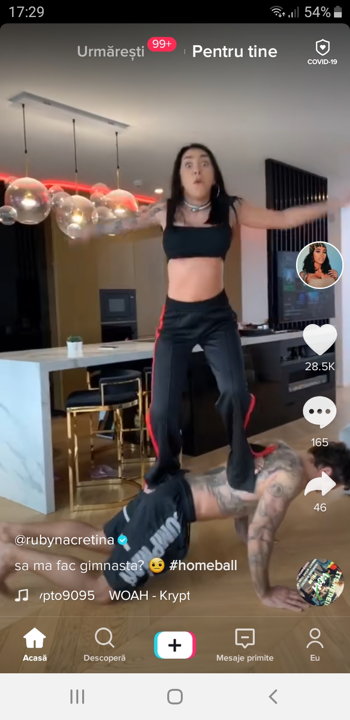 Cei doi s-au filmat încercând o figură specială pe Tik Tok în care el stă întins pe spate și ea stă pe el și încearcă să se ridice. Însă atunci când s-a ridicat în patru labe Ruby a alunecat și l-a lovit cu piciorul în coastă pe Robert care se vedea că nu mai poate de durere. Să sperăm că acest mic incident nu s-a lăsat cu spitale și doctori, mai ales pe vremurile acestea.