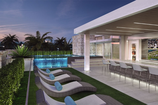 Apartamentul dispune de bar, zonă de biliard și o baie perfect echipată. Pe terasa amenajată există un spa în aer liber, o piscină infinită cu cascadă, o zonă de luat masa și șezlonguri.