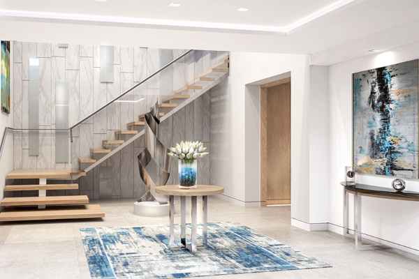 Intrarea în acest apartament este accesibilă printr-un hol privat, care te conduce către un spațiu personalizat, unde vei fi întâmpinat de un lift care te conduce direct către apartament. Acest spațiu contemporan, elegant, cu tavane înalte, pardoseală albe și un living somptuos, are, de asemenea, trei șeminee, un birou, o sală de gimnastică și patru dormitoare.