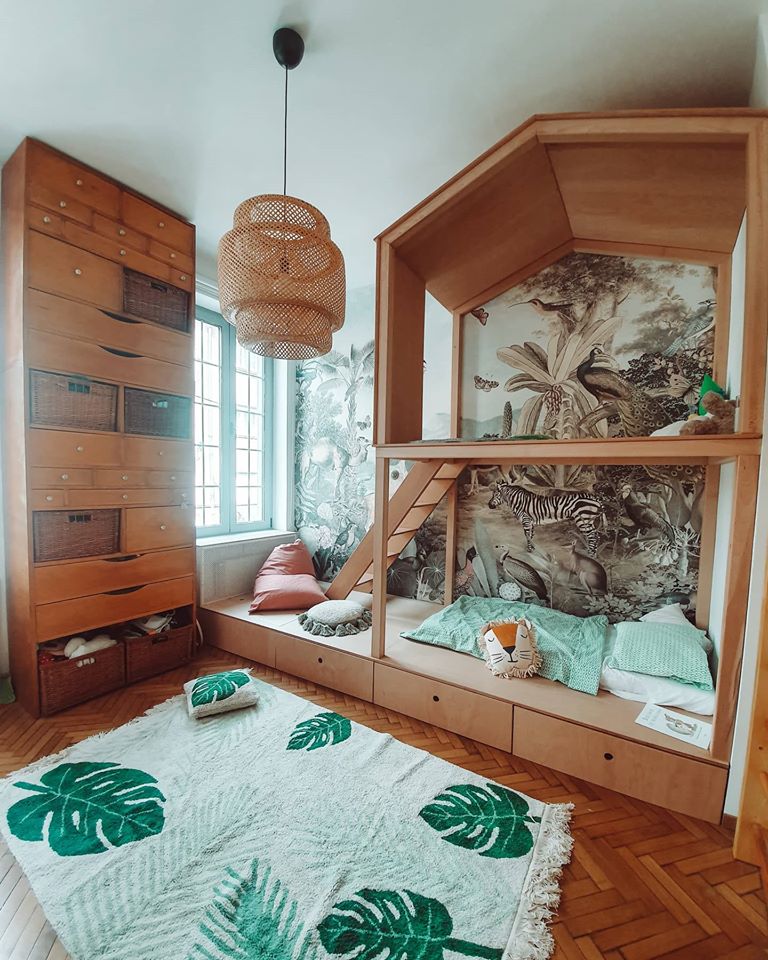 ? Tapetul cu junglă este comandat de pe Forest Homes, pe dimensiunile camerei.