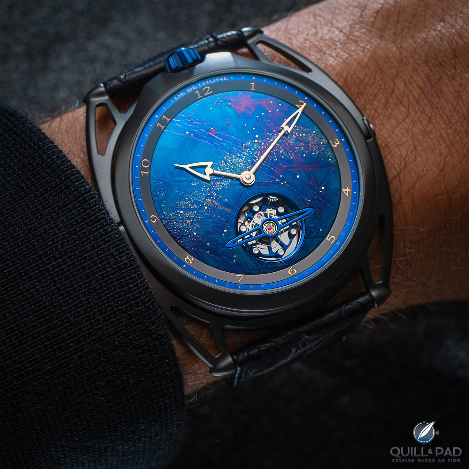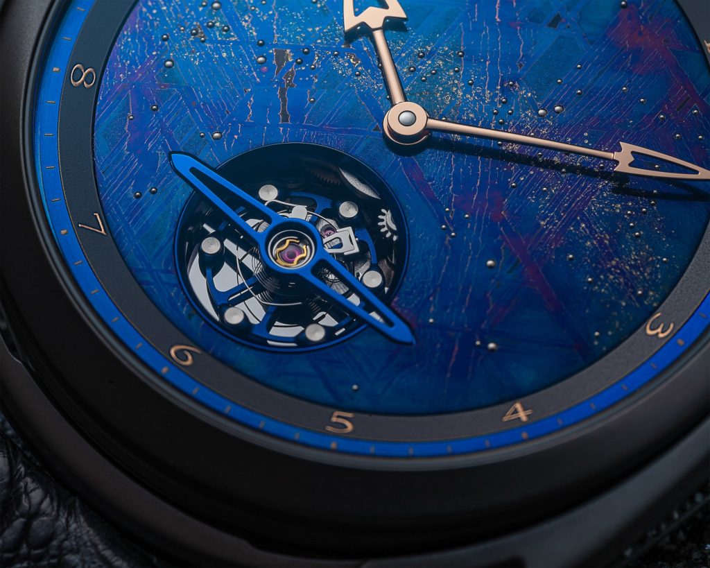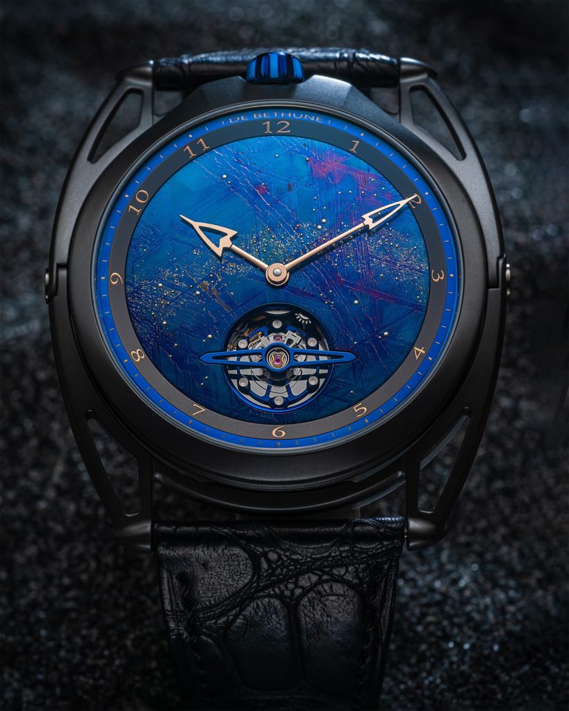 Stăpânirea lui De Bethune asupra oxidării termice a metalelor i-a permis să ridice nivelul de complexitate și mai mult prin crearea unui cer înstelat însoțit de Calea Lactee pe un cadran de meteorit albastru. Această nuanță strălucitoare de azur este obținută prin reacția chimică a ceea ce se întâmplă în interiorul meteoritului atunci când este încălzit.