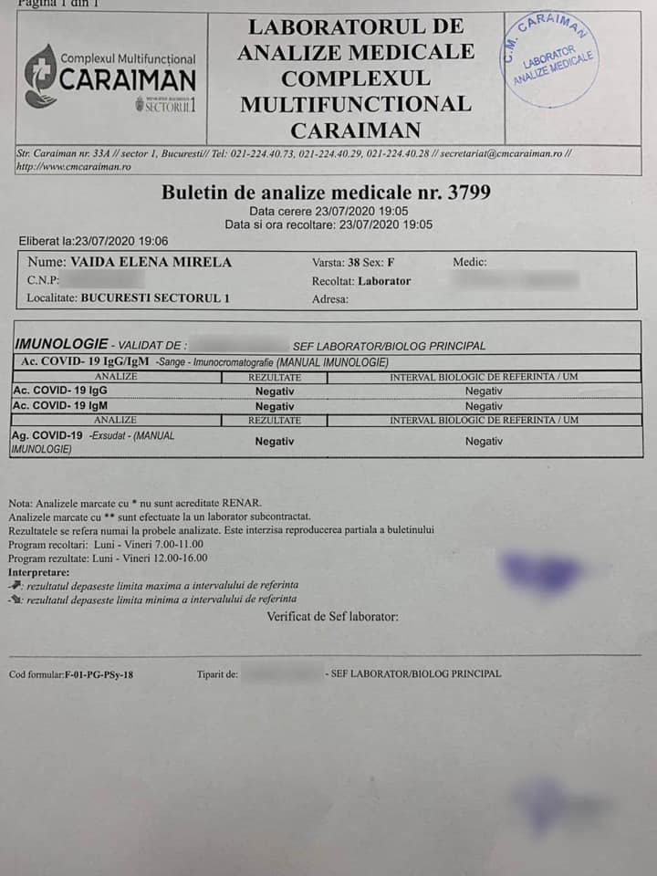 Mirela Vaida a ajuns la locație cu puțîn timp după ora 12.00. Ea a urmat traseul centrului drive-în pentru recoltare de probe biologice în vederea detectării virusului SARS COV2 prin testare Real Time RT-PCR. La prima stație a fost informată asupra politicii de GDPR și a